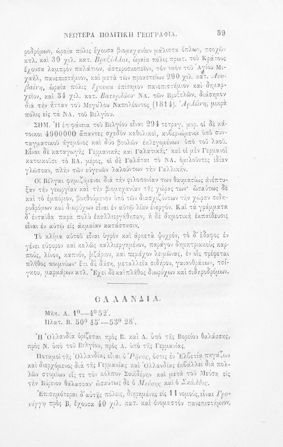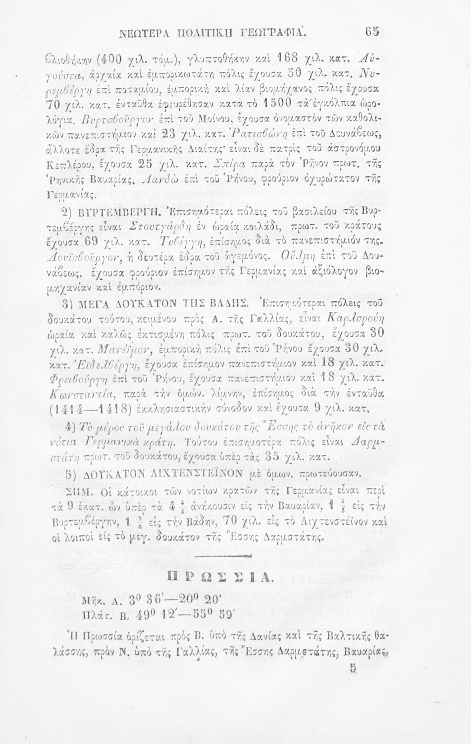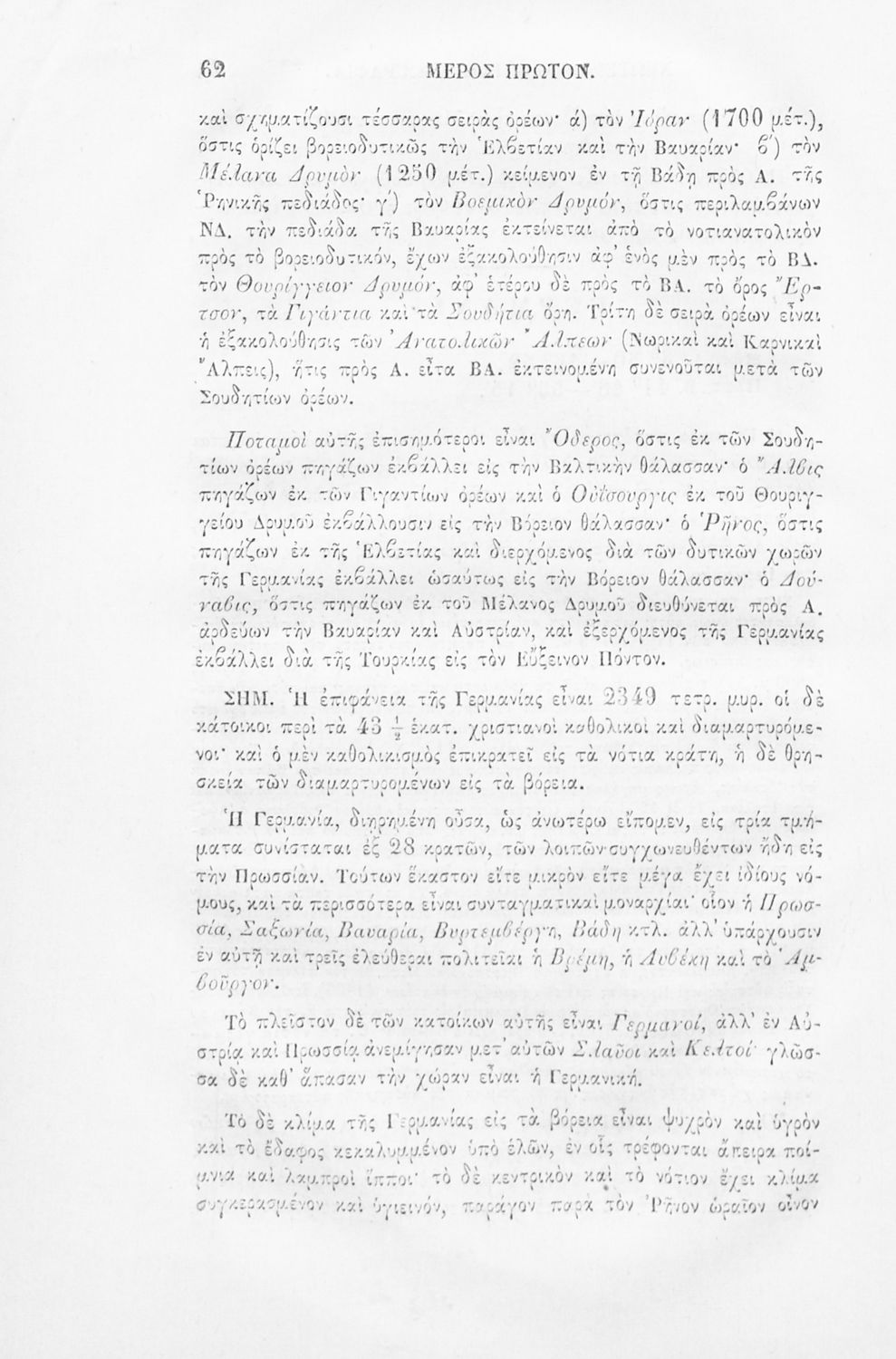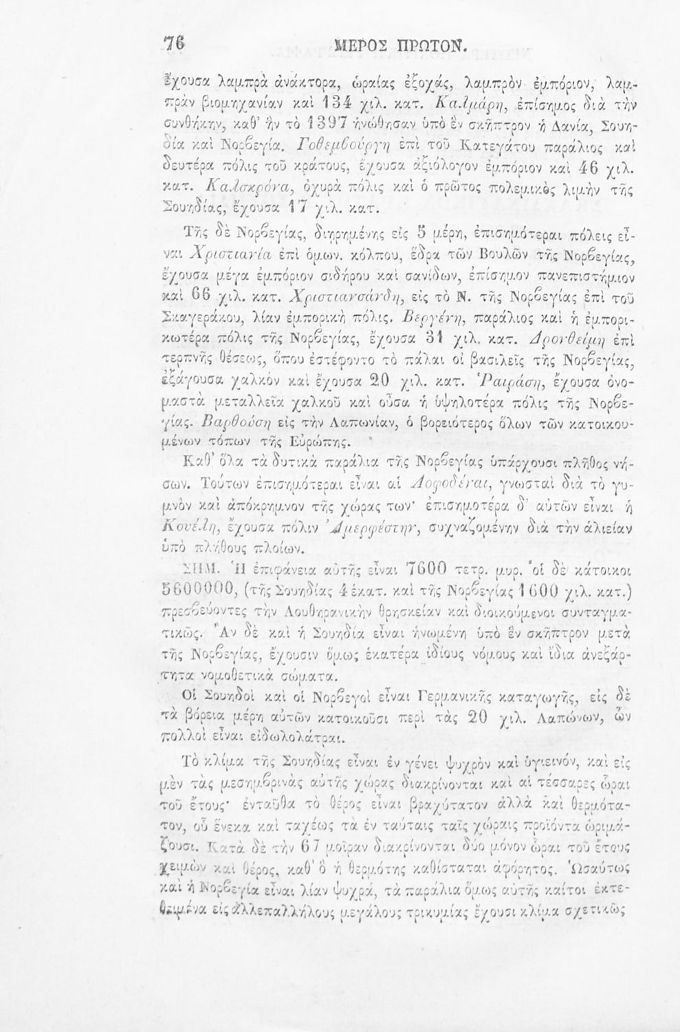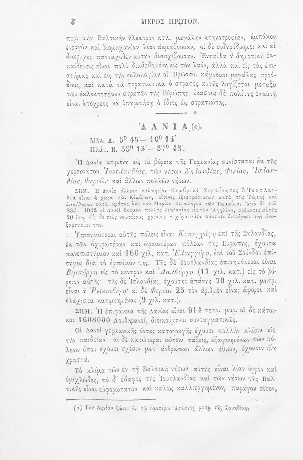 Σχολικό εγχειρίδιο Γεωγραφίας για τα Ελληνικά Σχολεία που περιλαμβάνει εισαγωγή στις βασικές έννοιες και ορισμούς της επιστήμης, και στοιχεία μαθηματικής, φυσικής και πολιτικής γεωγραφίας των πέντε ηπείρων.