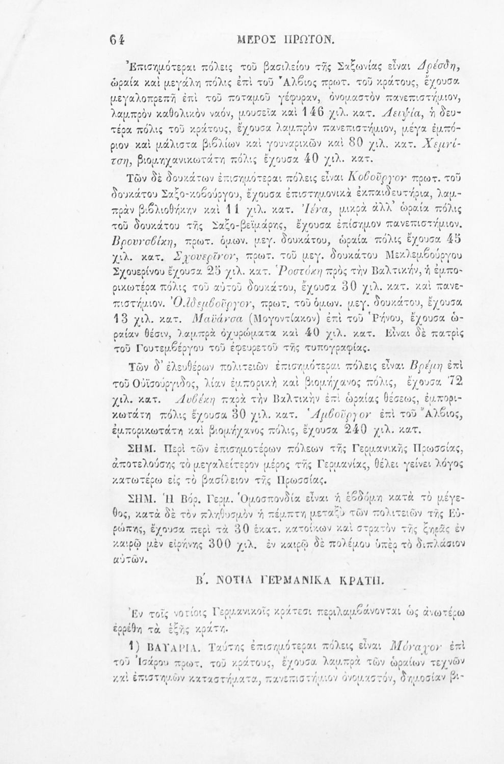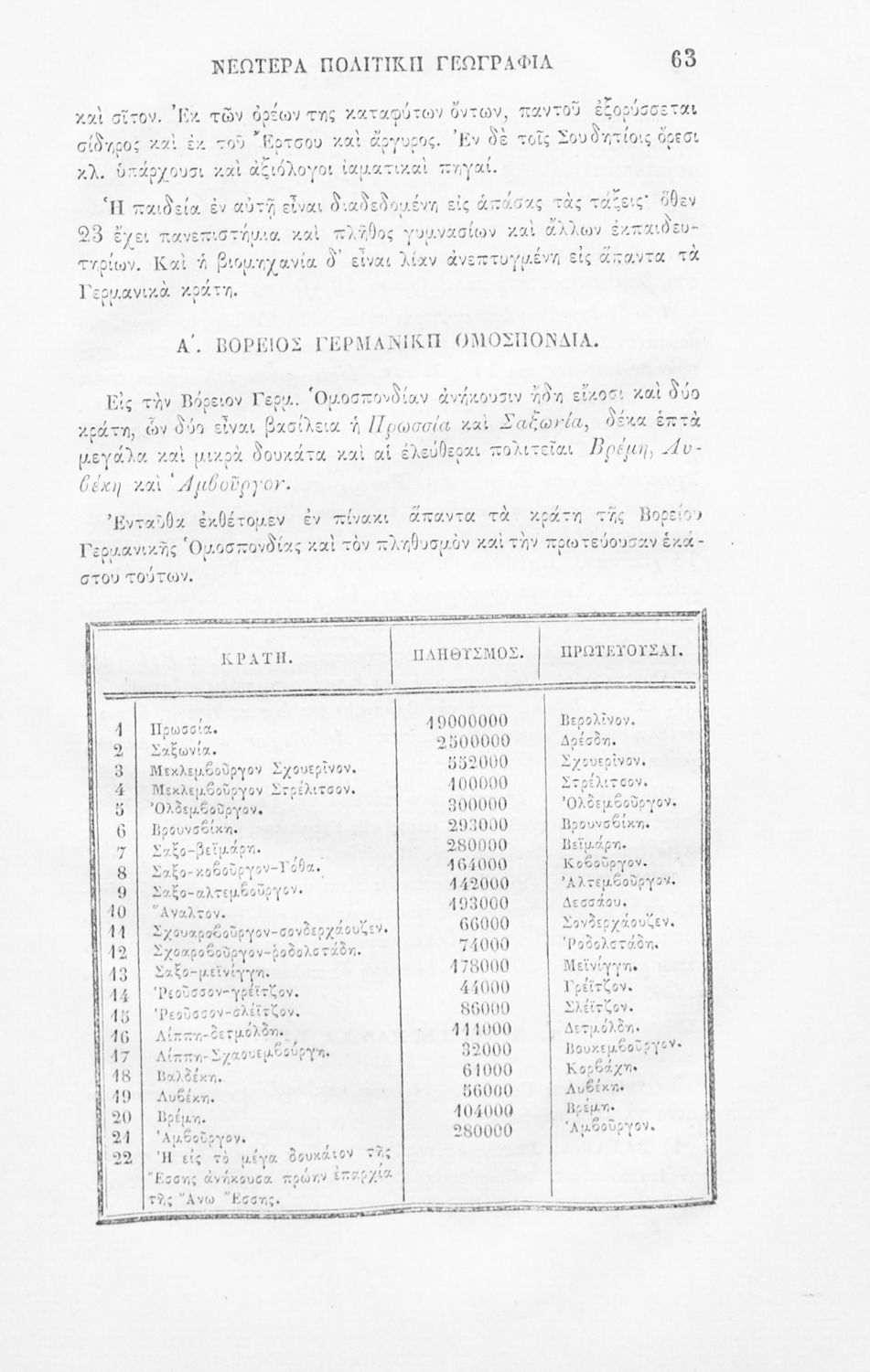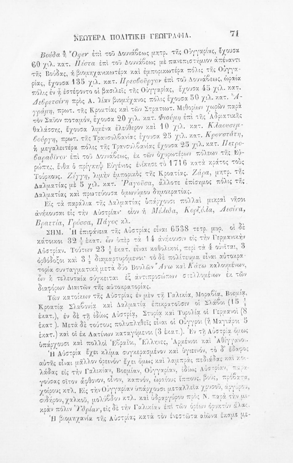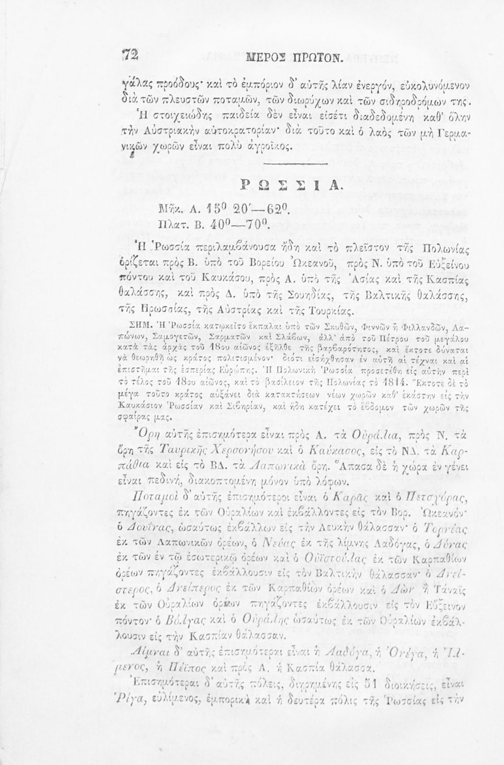 Σχολικό εγχειρίδιο Γεωγραφίας για τα Ελληνικά Σχολεία που περιλαμβάνει εισαγωγή στις βασικές έννοιες και ορισμούς της επιστήμης, και στοιχεία μαθηματικής, φυσικής και πολιτικής γεωγραφίας των πέντε ηπείρων.