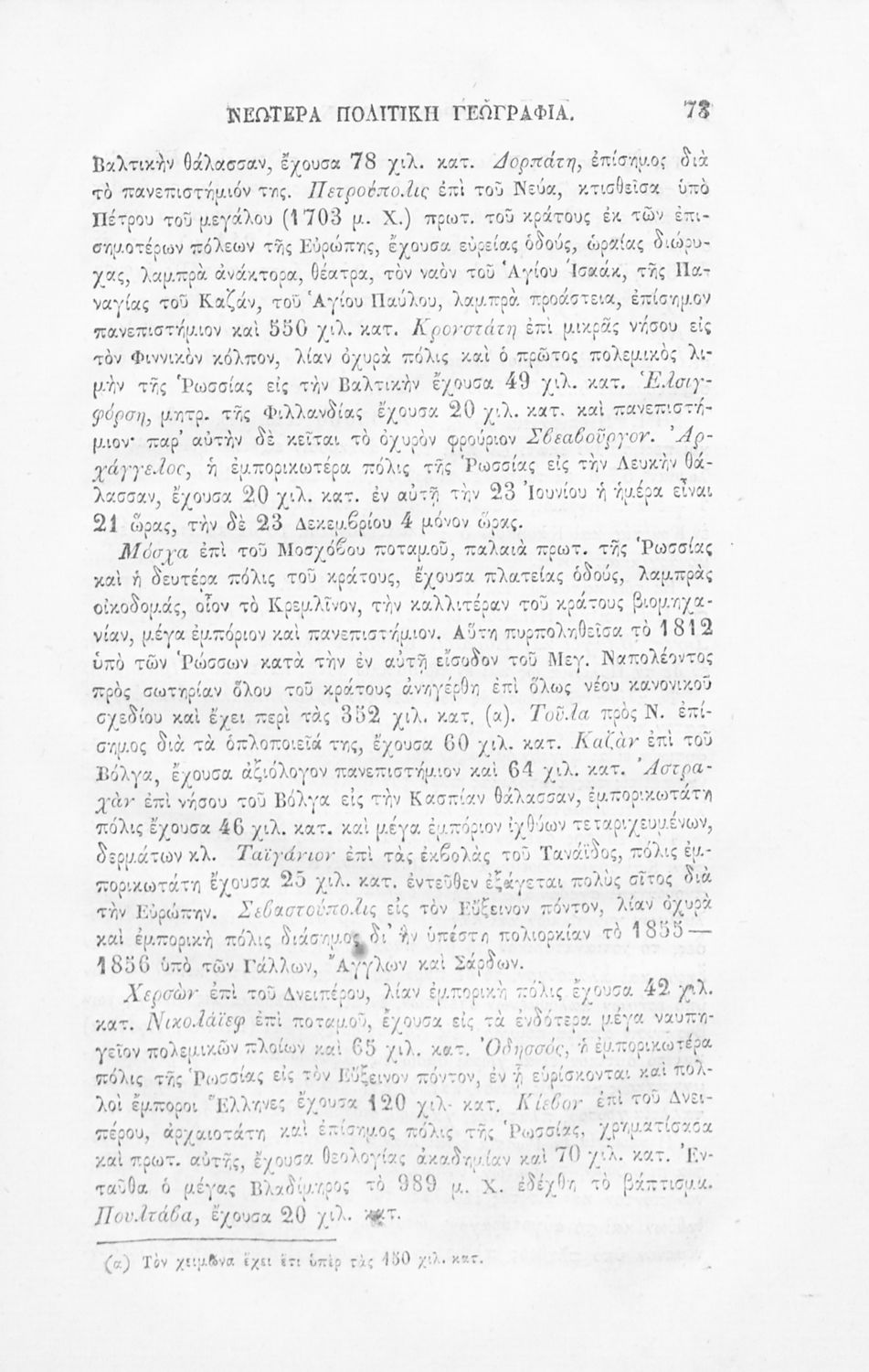 LDR 01316 2200217 4500 035 ## _a02-02949 040 ## _aΕλληνικό Λογοτεχνικό και Ιστορικό Αρχείο 041 ## _ael 100 ## _aΑ. Α. Σακελλάριος 110 ## _a2949 245 0# _aΣτοιχειώδης γεωγραφία πολιτική, μαθηματική και φυσική προς χρήσιν της εν τοις ελληνικοίς σχολείοις σπουδαζούσης νεολαίας 250 ## _a5η Έκδοση 260 ## _aΑθήνα _bΠ. Δ. Σακελλαρίου _c1868 300 ## _a188 _bΣχεδιαγράμματα (ασπρόμαυρα) 520 ## _aΣχολικό εγχειρίδιο Γεωγραφίας για τα Ελληνικά Σχολεία που περιλαμβάνει εισαγωγή στις βασικές έννοιες και ορισμούς της επιστήμης, και στοιχεία μαθηματικής, φυσικής και πολιτικής γεωγραφίας των πέντε ηπείρων. 521 ## _aΕλληνικό Σχολείο 522 ## _aΕλλάδα 546 ## _aΚαθαρεύουσα 563 ## _aΜαλακό Εξώφυλλο 583 ## _a8928/ 21-7-1863 650 #4 _aΔορυφόροι _aΉπειροι _aΠληθυσμός