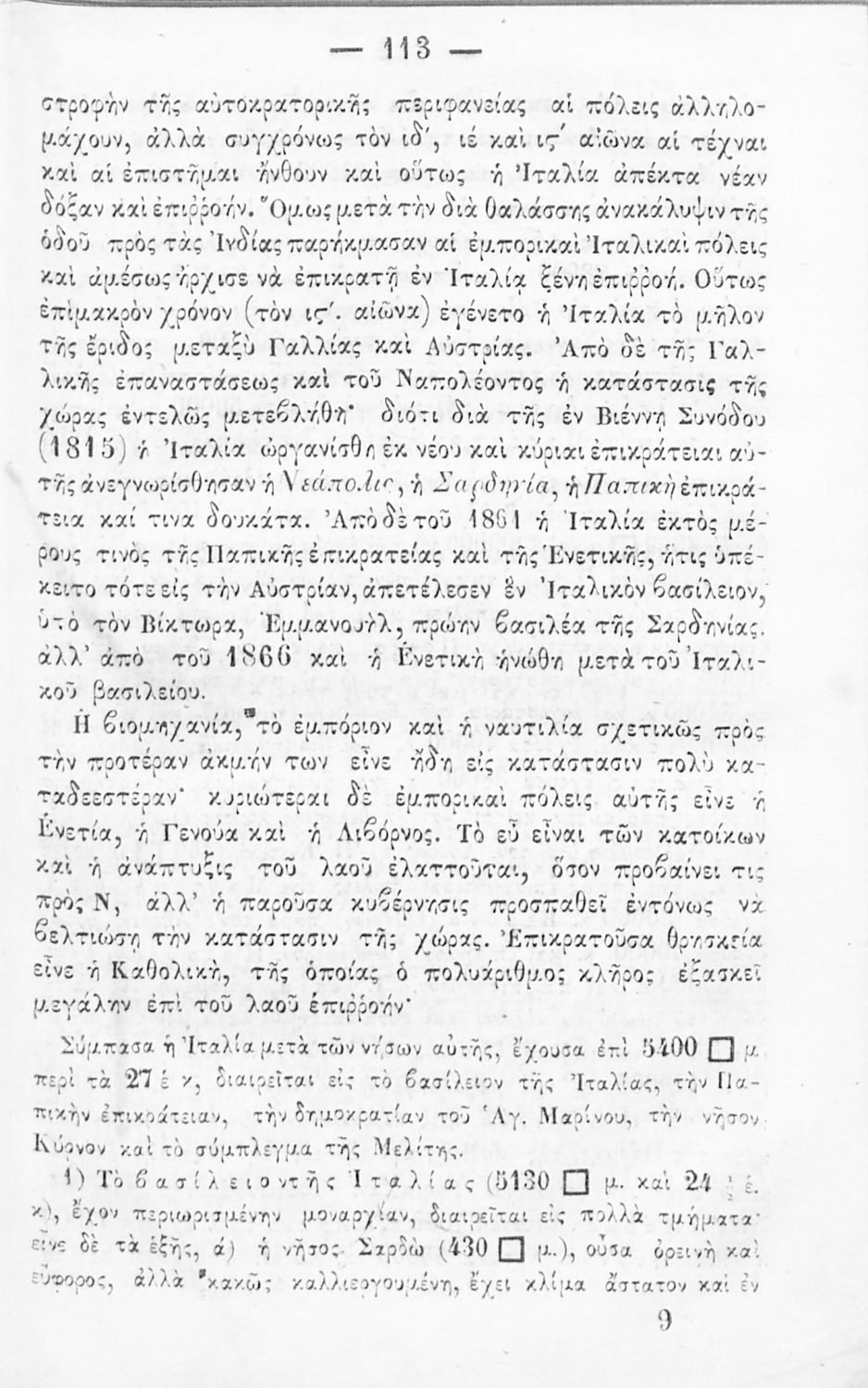 Βαθμίδα εκπαίδευσης: Δευτεροβάθμια Τάξη: Ελληνικό Σχολείο Μάθημα: Γεωγραφία Γλώσσα: Καθαρεύουσα Παρουσίαση περιεχομένου: Σχολικό εγχειρίδιο Γεωγραφίας για τα Ελληνικά Σχολεία που περιλαμβάνει στοιχεία μαθηματικής και φυσικής γεωγραφίας και εστιάζει στην πολιτική γεωγραφία των πέντε ηπείρων. |
