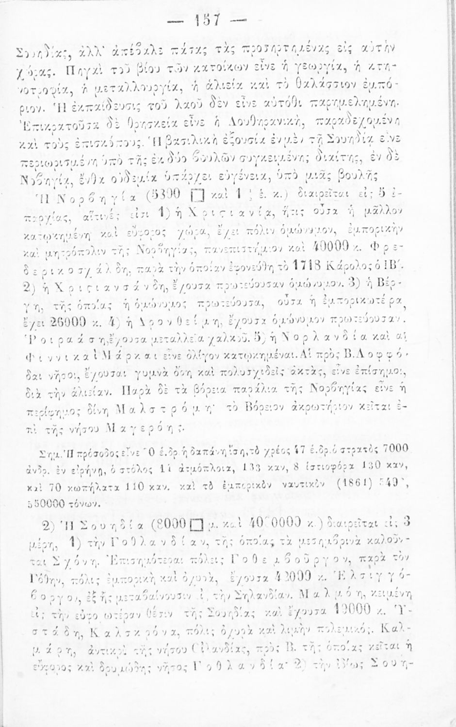 LDR 01355 2200217 4500 035 ## _a02-02951 040 ## _aΕλληνικό Λογοτεχνικό και Ιστορικό Αρχείο 041 ## _ael 100 ## _aΓουλιέλμος Σταλβέργος (Wilhelm Stahlberg) _aΓ. Α. Βακαλόπουλος (απόδοση) 110 ## _a2951 245 0# _aΓεωγραφική κλίμαξ ήτοι στοιχειώδης γεωγραφία μαθηματική, φυσική, πολιτική γεωγραφία, Δευτέρα περίοδος προς χρήσιν των Ελλ. Σχολείων 250 ## _a8η Έκδοση 260 ## _aΑθήνα _bΝ. Αγγελίδης _c1867 300 ## _a276 520 ## _aΣχολικό εγχειρίδιο Γεωγραφίας για τα Ελληνικά Σχολεία που περιλαμβάνει στοιχεία μαθηματικής και φυσικής γεωγραφίας και εστιάζει στην πολιτική γεωγραφία των πέντε ηπείρων. 521 ## _aΕλληνικό Σχολείο 522 ## _aΕλλάδα 546 ## _aΚαθαρεύουσα 563 ## _aΜαλακό Εξώφυλλο 583 ## _a8418/16-11-1866 _c1866 650 #4 _aΉπειροι _aΠληθυσμός _aΠολιτική _aΦυσική και μαθηματική γεωγραφία
