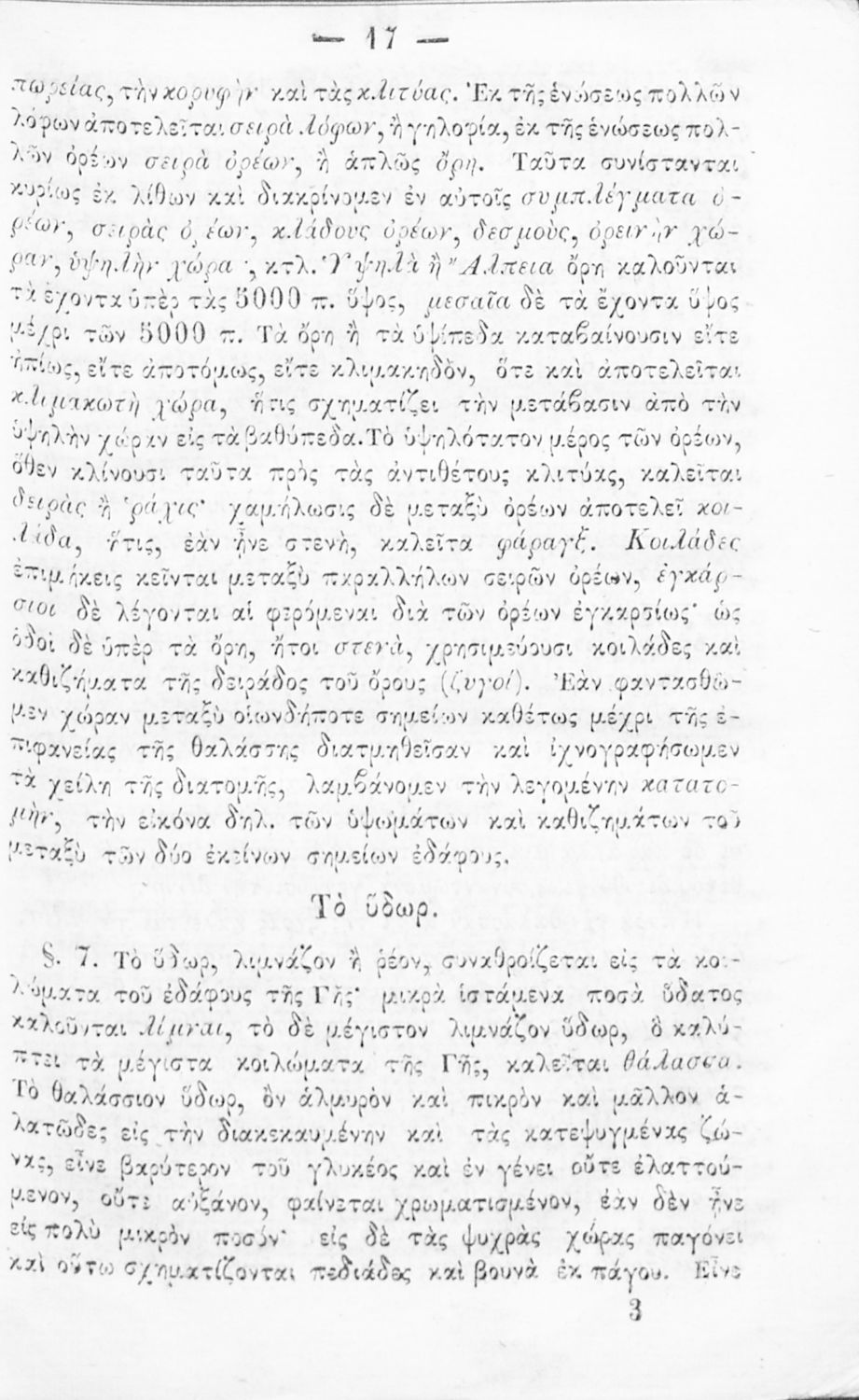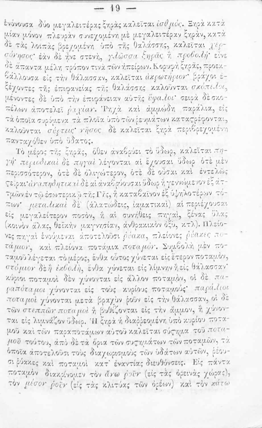 Σχολικό εγχειρίδιο Γεωγραφίας για τα Ελληνικά Σχολεία και Παρθεναγωγεία που περιλαμβάνει εισαγωγή στη φυσική, πολιτική και οικονομική γεωγραφία και μια γενική επισκόπηση της Ελλάδας και της Ευρωπαϊκής Τουρκίας