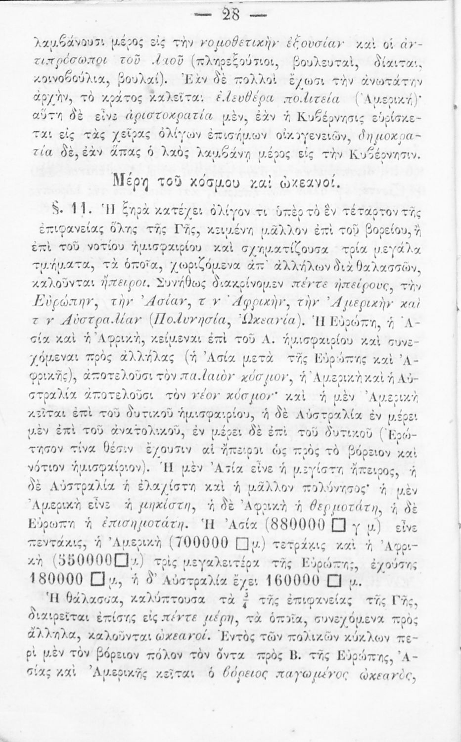 Γεωγραφική κλίμαξ ήτοι στοιχειώδης γεωγραφία μαθηματική, φυσική, πολιτική γεωγραφία, Δευτέρα περίοδος προς χρήσιν των Ελλ. Σχολείων