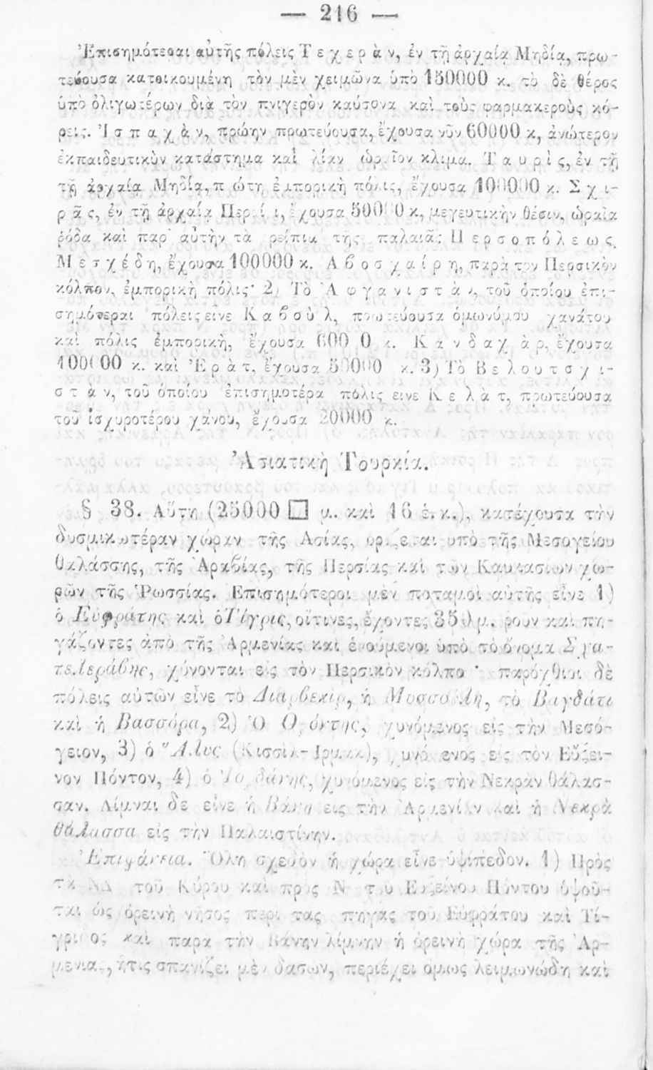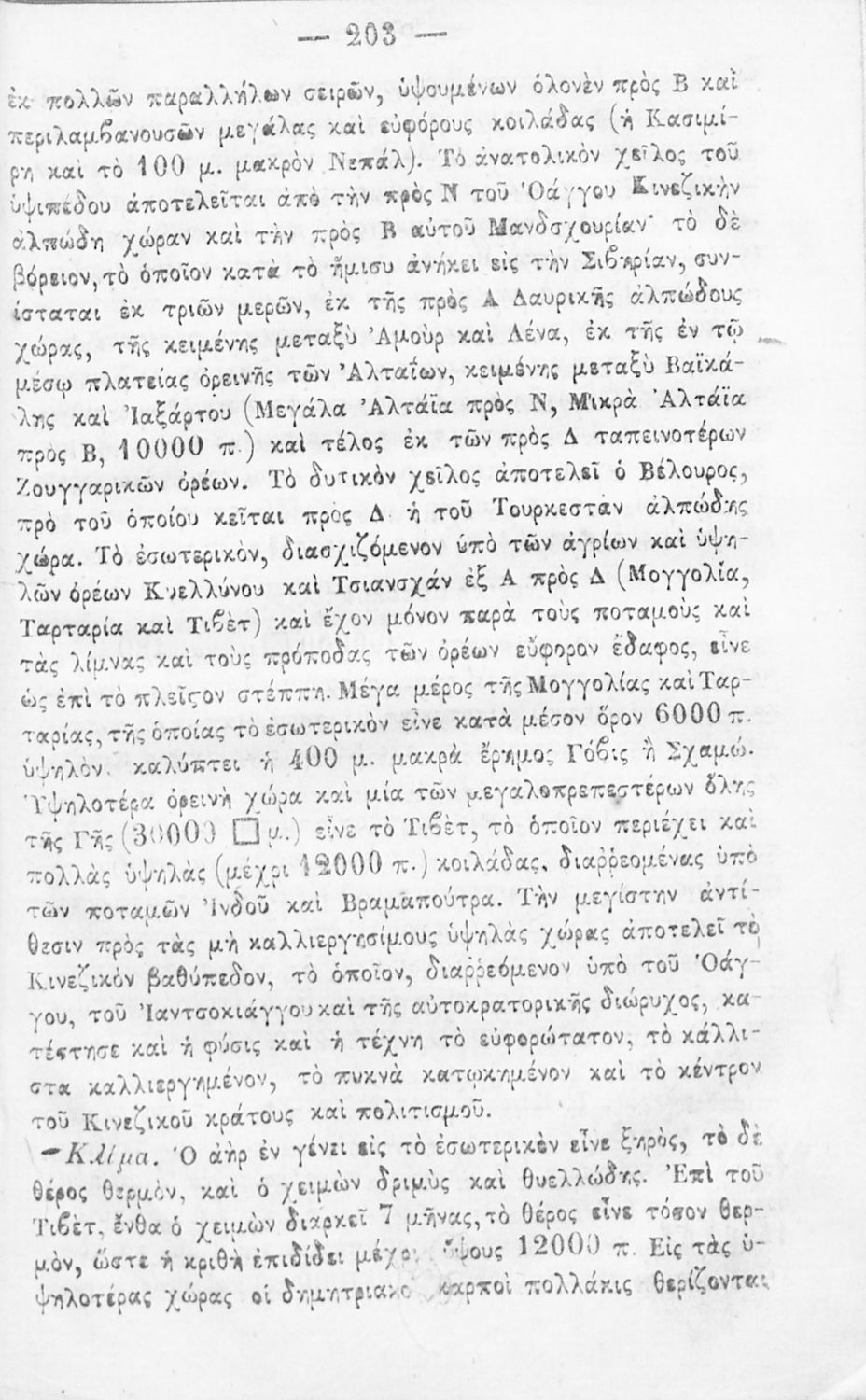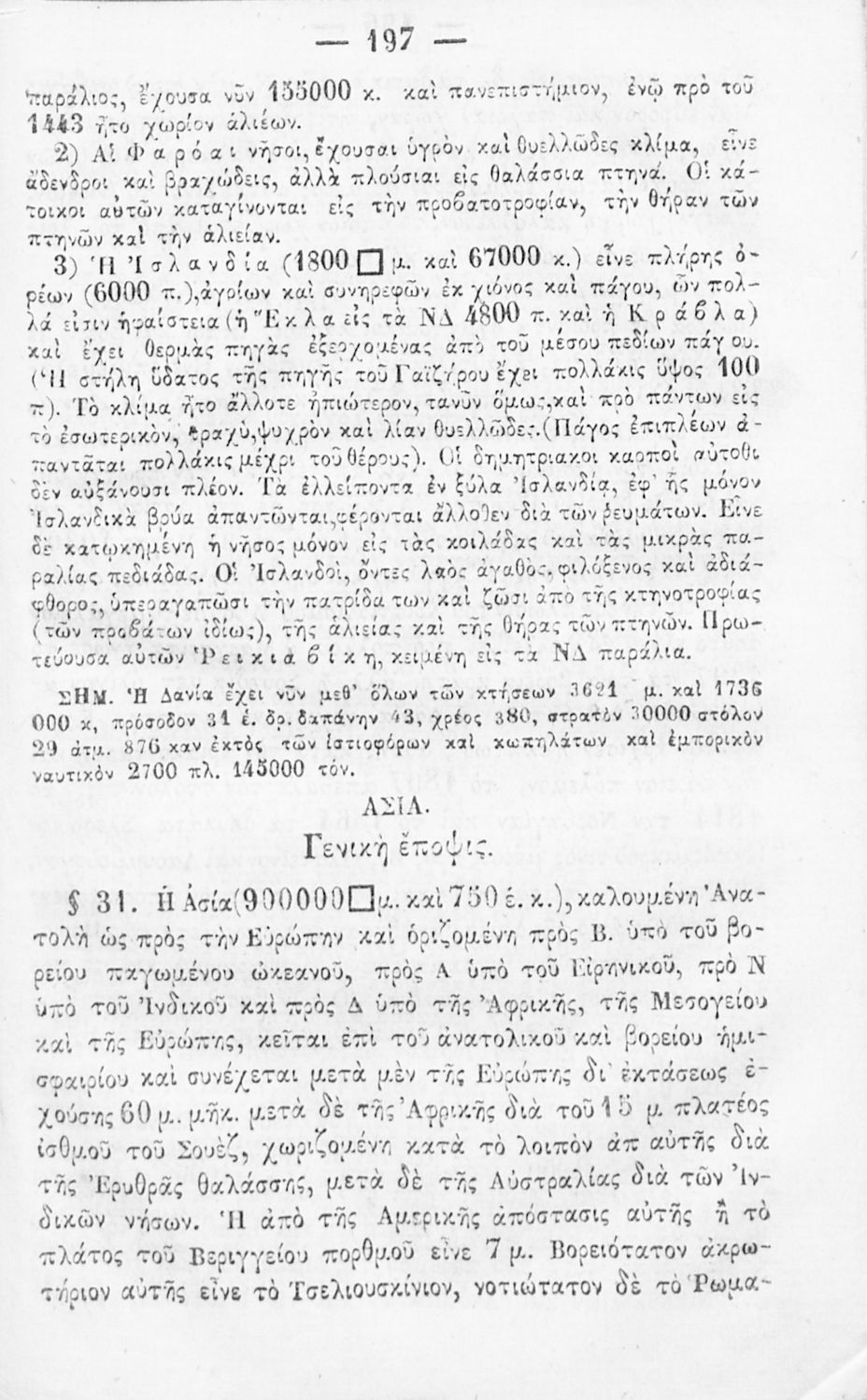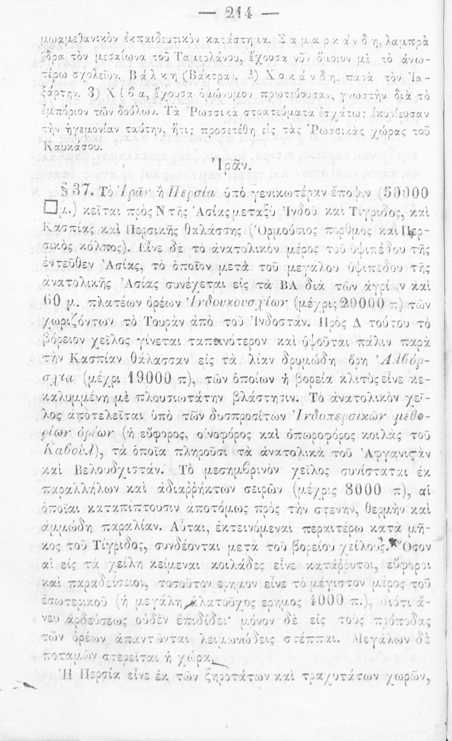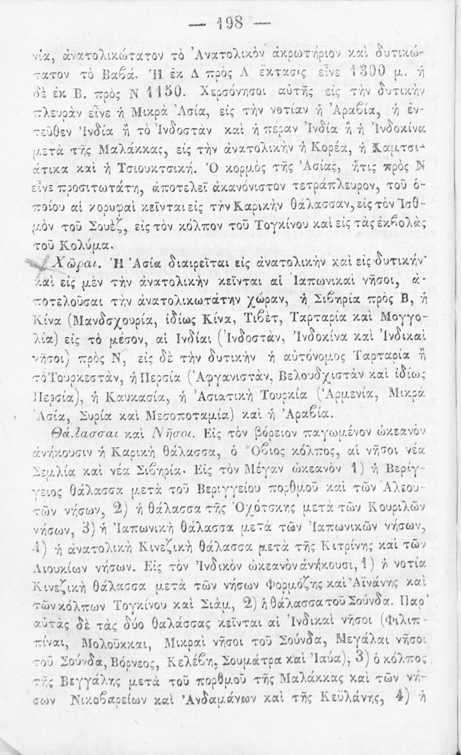 Βαθμίδα εκπαίδευσης: Δευτεροβάθμια Τάξη: Ελληνικό Σχολείο Μάθημα: Γεωγραφία Γλώσσα: Καθαρεύουσα Παρουσίαση περιεχομένου: Σχολικό εγχειρίδιο Γεωγραφίας για τα Ελληνικά Σχολεία που περιλαμβάνει στοιχεία μαθηματικής και φυσικής γεωγραφίας και εστιάζει στην πολιτική γεωγραφία των πέντε ηπείρων. |