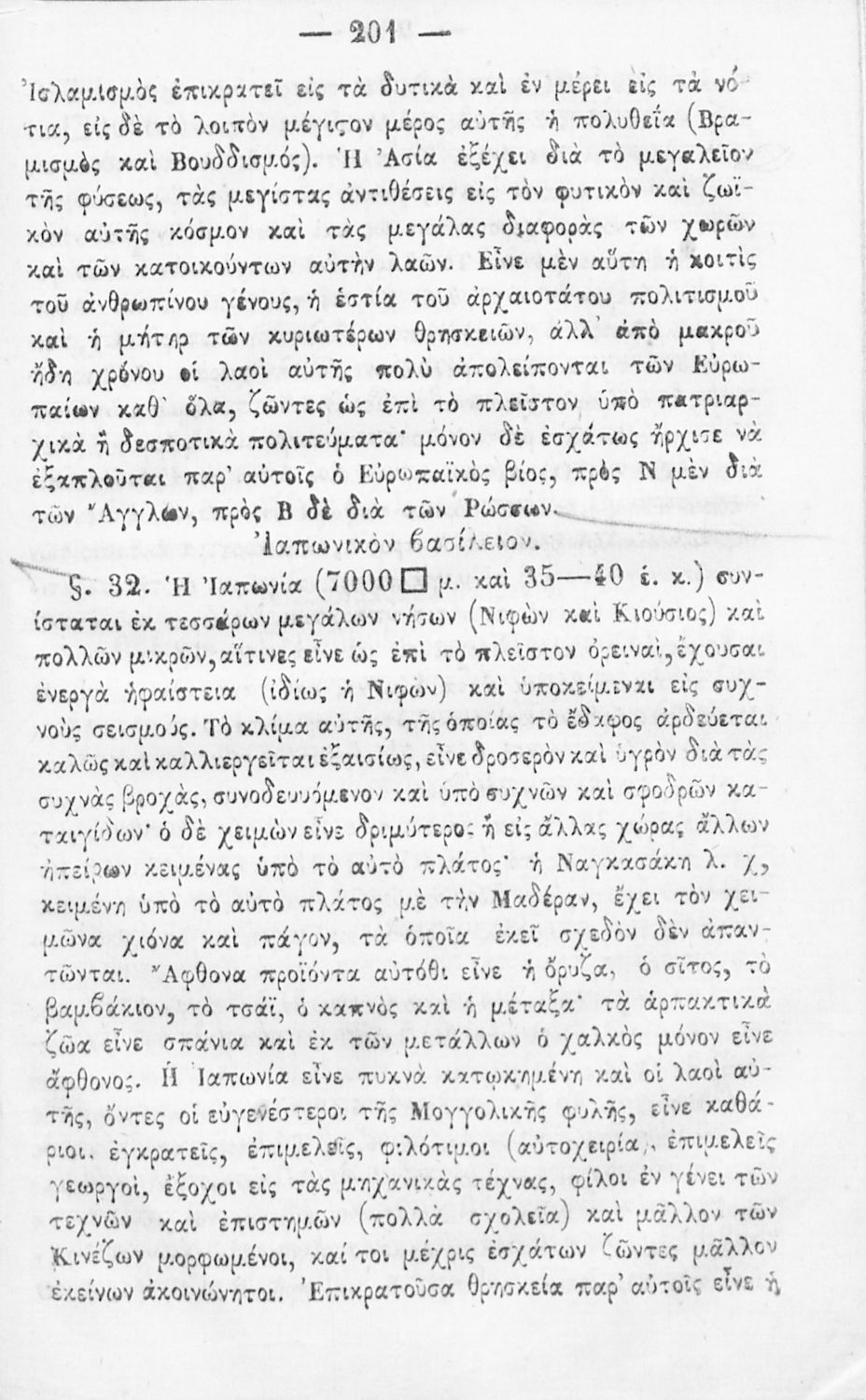 LDR 01355 2200217 4500 035 ## _a02-02951 040 ## _aΕλληνικό Λογοτεχνικό και Ιστορικό Αρχείο 041 ## _ael 100 ## _aΓουλιέλμος Σταλβέργος (Wilhelm Stahlberg) _aΓ. Α. Βακαλόπουλος (απόδοση) 110 ## _a2951 245 0# _aΓεωγραφική κλίμαξ ήτοι στοιχειώδης γεωγραφία μαθηματική, φυσική, πολιτική γεωγραφία, Δευτέρα περίοδος προς χρήσιν των Ελλ. Σχολείων 250 ## _a8η Έκδοση 260 ## _aΑθήνα _bΝ. Αγγελίδης _c1867 300 ## _a276 520 ## _aΣχολικό εγχειρίδιο Γεωγραφίας για τα Ελληνικά Σχολεία που περιλαμβάνει στοιχεία μαθηματικής και φυσικής γεωγραφίας και εστιάζει στην πολιτική γεωγραφία των πέντε ηπείρων. 521 ## _aΕλληνικό Σχολείο 522 ## _aΕλλάδα 546 ## _aΚαθαρεύουσα 563 ## _aΜαλακό Εξώφυλλο 583 ## _a8418/16-11-1866 _c1866 650 #4 _aΉπειροι _aΠληθυσμός _aΠολιτική _aΦυσική και μαθηματική γεωγραφία
