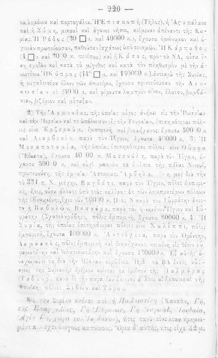 Σχολικό εγχειρίδιο Γεωγραφίας για τα Ελληνικά Σχολεία και Παρθεναγωγεία που περιλαμβάνει εισαγωγή στη φυσική, πολιτική και οικονομική γεωγραφία και μια γενική επισκόπηση της Ελλάδας και της Ευρωπαϊκής Τουρκίας