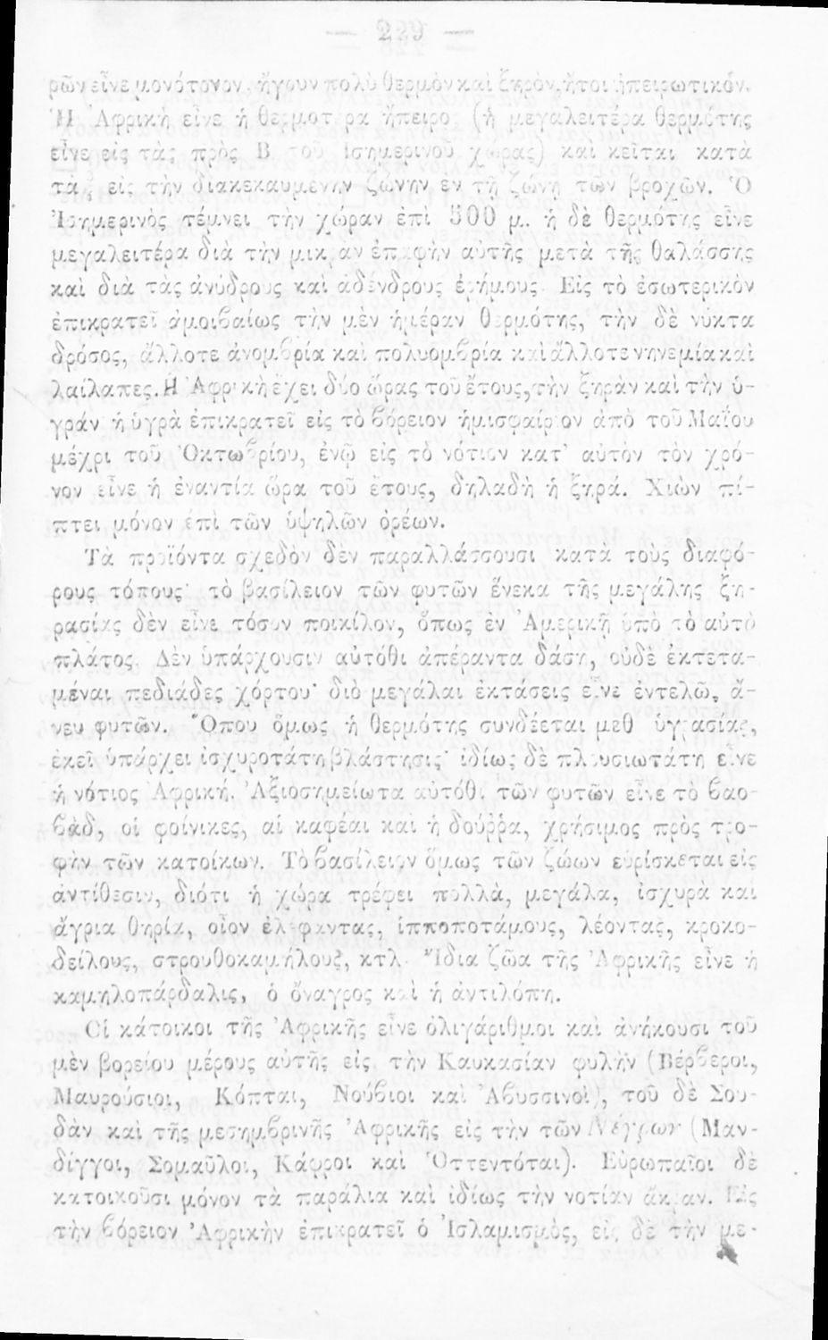 Σχολικό εγχειρίδιο Γεωγραφίας για τα Ελληνικά Σχολεία και τα Παρθεναγωγεία που περιλαμβάνει εισαγωγή στη φυσική, πολιτική και οικονομική γεωγραφία, και παρουσιάζει την Ελλάδα και ενδεικτικές χώρες και περιοχές