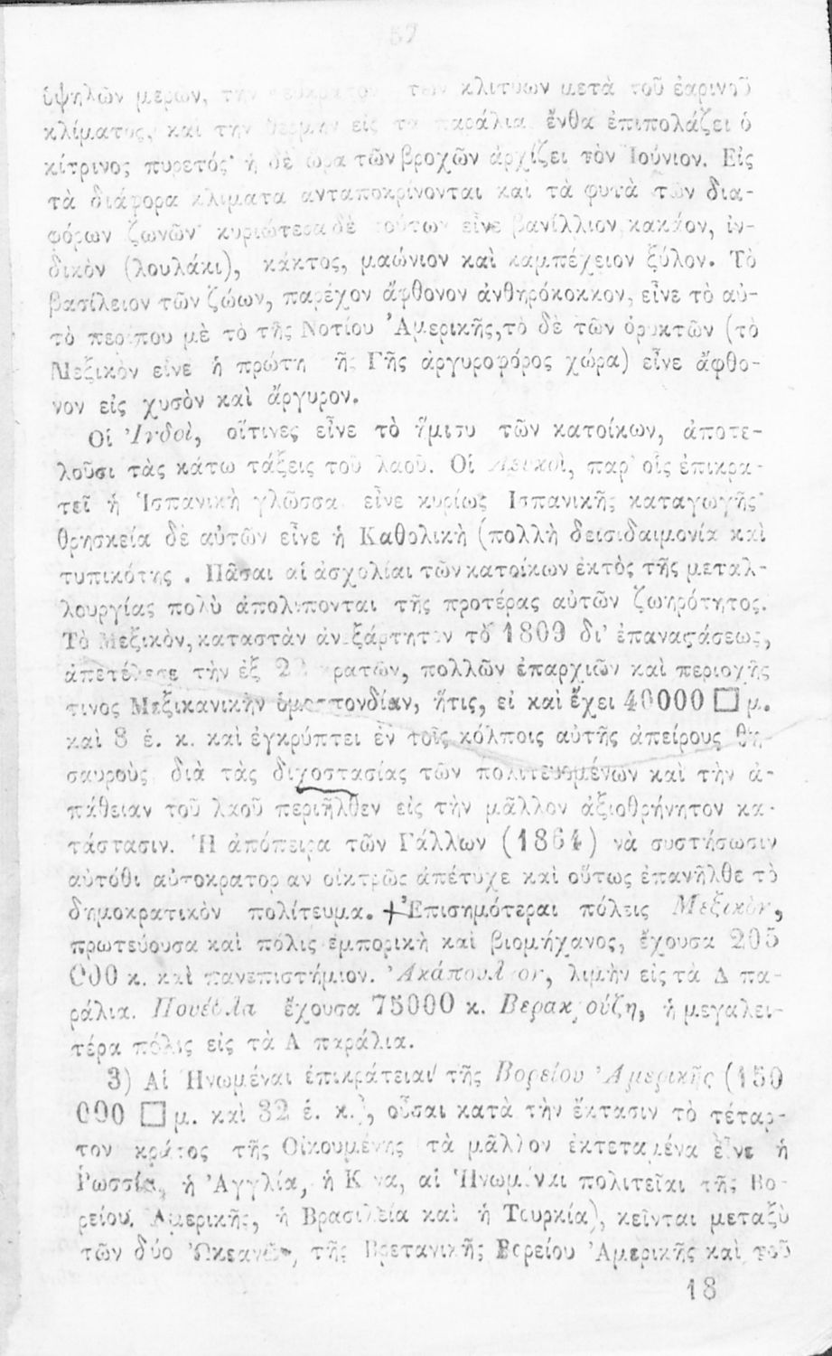 Βαθμίδα εκπαίδευσης: Δευτεροβάθμια Τάξη: Ελληνικό Σχολείο Μάθημα: Γεωγραφία Γλώσσα: Καθαρεύουσα Παρουσίαση περιεχομένου: Σχολικό εγχειρίδιο Γεωγραφίας για τα Ελληνικά Σχολεία που περιλαμβάνει στοιχεία μαθηματικής και φυσικής γεωγραφίας και εστιάζει στην πολιτική γεωγραφία των πέντε ηπείρων. |