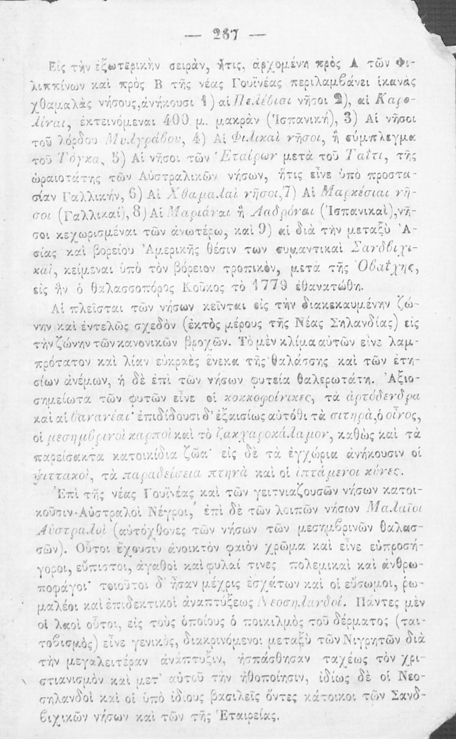 LDR 01355 2200217 4500 035 ## _a02-02951 040 ## _aΕλληνικό Λογοτεχνικό και Ιστορικό Αρχείο 041 ## _ael 100 ## _aΓουλιέλμος Σταλβέργος (Wilhelm Stahlberg) _aΓ. Α. Βακαλόπουλος (απόδοση) 110 ## _a2951 245 0# _aΓεωγραφική κλίμαξ ήτοι στοιχειώδης γεωγραφία μαθηματική, φυσική, πολιτική γεωγραφία, Δευτέρα περίοδος προς χρήσιν των Ελλ. Σχολείων 250 ## _a8η Έκδοση 260 ## _aΑθήνα _bΝ. Αγγελίδης _c1867 300 ## _a276 520 ## _aΣχολικό εγχειρίδιο Γεωγραφίας για τα Ελληνικά Σχολεία που περιλαμβάνει στοιχεία μαθηματικής και φυσικής γεωγραφίας και εστιάζει στην πολιτική γεωγραφία των πέντε ηπείρων. 521 ## _aΕλληνικό Σχολείο 522 ## _aΕλλάδα 546 ## _aΚαθαρεύουσα 563 ## _aΜαλακό Εξώφυλλο 583 ## _a8418/16-11-1866 _c1866 650 #4 _aΉπειροι _aΠληθυσμός _aΠολιτική _aΦυσική και μαθηματική γεωγραφία