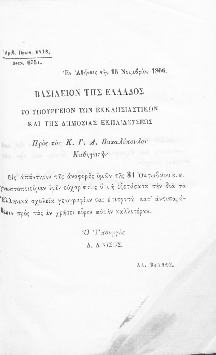 Υπουργική απόφαση / Σύμβαση: 8418/16-11-1866