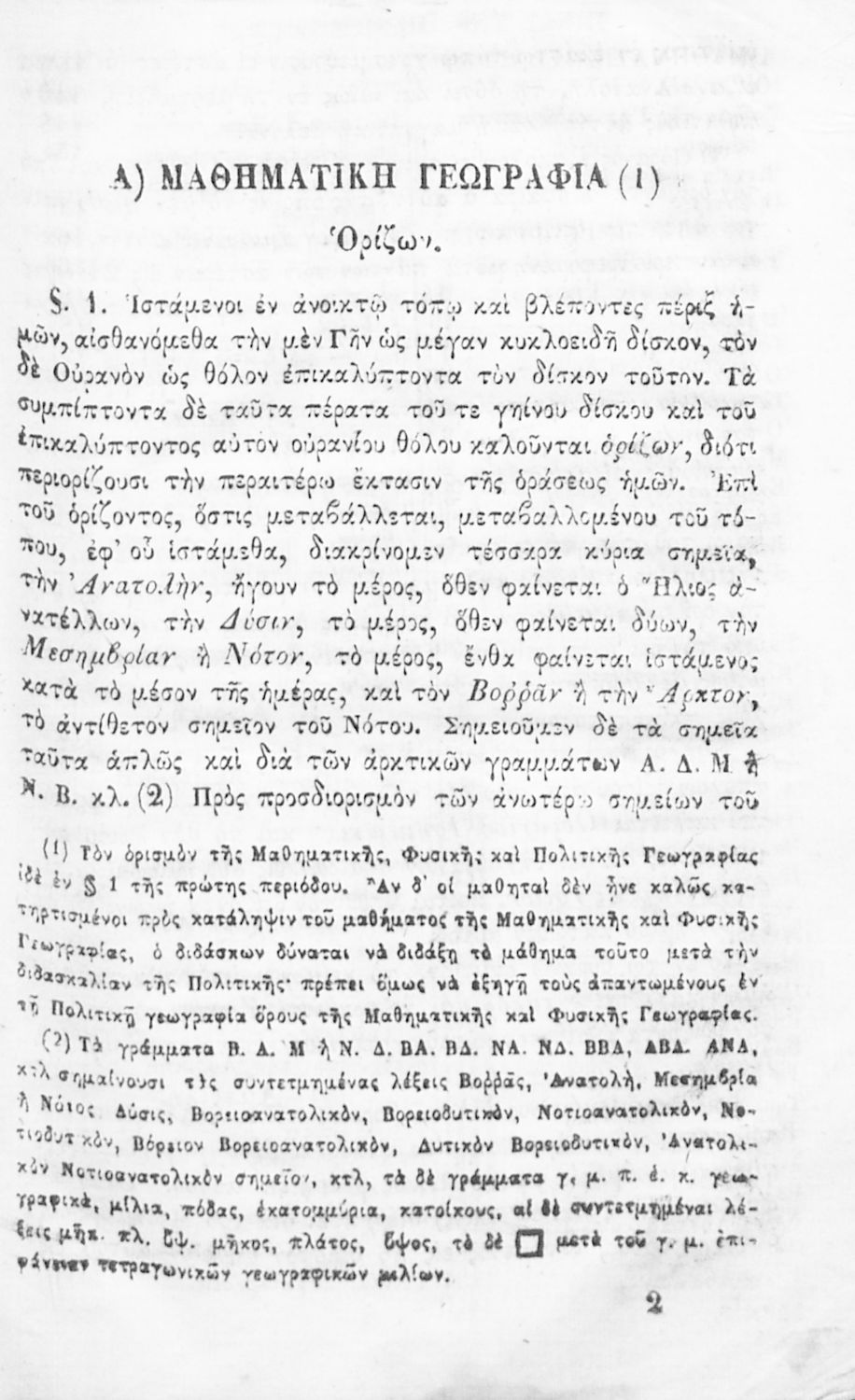 Τίτλος: Γεωγραφική κλίμαξ ήτοι στοιχειώδης γεωγραφία μαθηματική, φυσική, πολιτική γεωγραφία, Δευτέρα περίοδος προς χρήσιν των Ελλ. Σχολείων