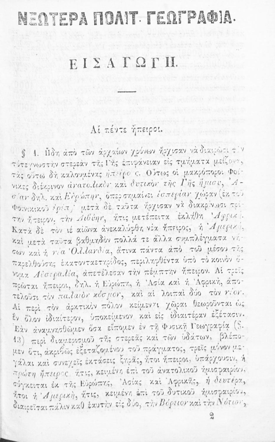 Τίτλος: Γεωγραφική κλίμαξ ήτοι στοιχειώδης γεωγραφία, πολιτική γεωγραφία, Τρίτη περίοδος προς χρήσιν των Γυμνασίων