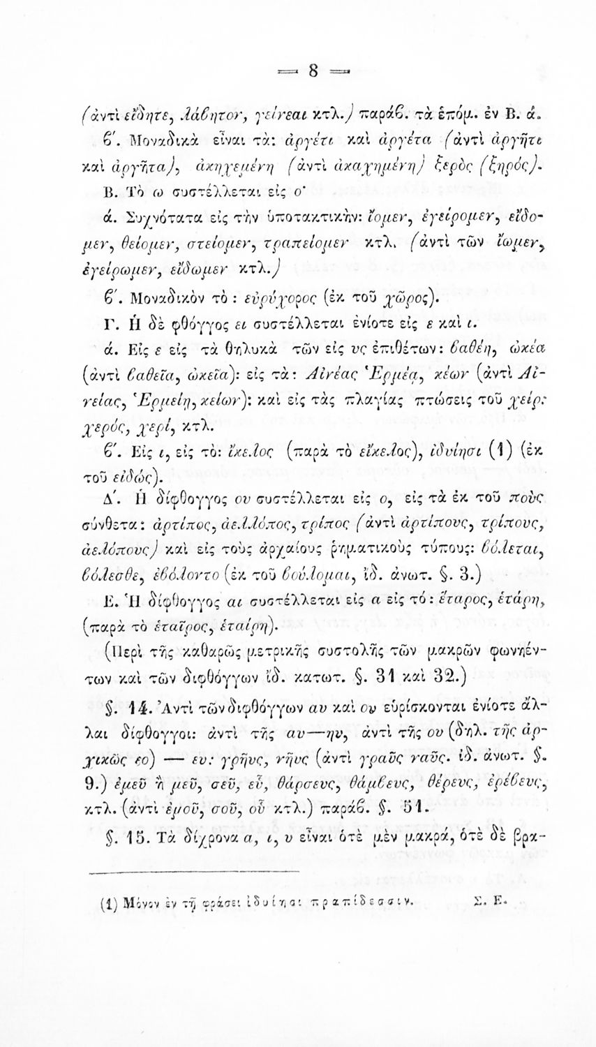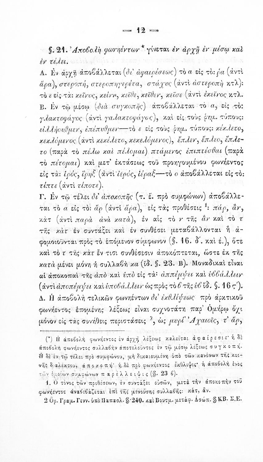 LDR 01237 2200193 4500 035 ## _a02-02957 040 ## _aΕλληνικό Λογοτεχνικό και Ιστορικό Αρχείο 041 ## _ael 100 ## _aΕυάγγελος Κ. Κοφινιώτης 110 ## _a1867.67 245 0# _aΓραμματική της ομηρικής διαλέκτου μετταγλωττισθείσα εκ της γερμανικής, εκδίδεται προς χρήσιν της εν τοις Γυμνασίοις σπουδαζούσης νεολαίας 260 ## _aΑθήνα _bΆγγελος Καναριώτης _c1867 300 ## _a56 _bΔιακοσμητικά στοιχεία (ασπρόμαυρα) 520 ## _aΣχολικό εγχειρίδιο Αρχαίων Ελληνικών Γυμνασίου που περιλαμβάνει γραμματική της ομηρικής διαλέκτου και εκτενή αναφορά στη δομή και το περιεχόμενο της ομηρικής ποίησης. 521 ## _aΓυμνάσιο 522 ## _aΕλλάδα 546 ## _aΚαθαρεύουσα 563 ## _aΜαλακό Εξώφυλλο 650 #4 _aΓραμματική _aΔιδάγματα _aΠροσχηματισμοί