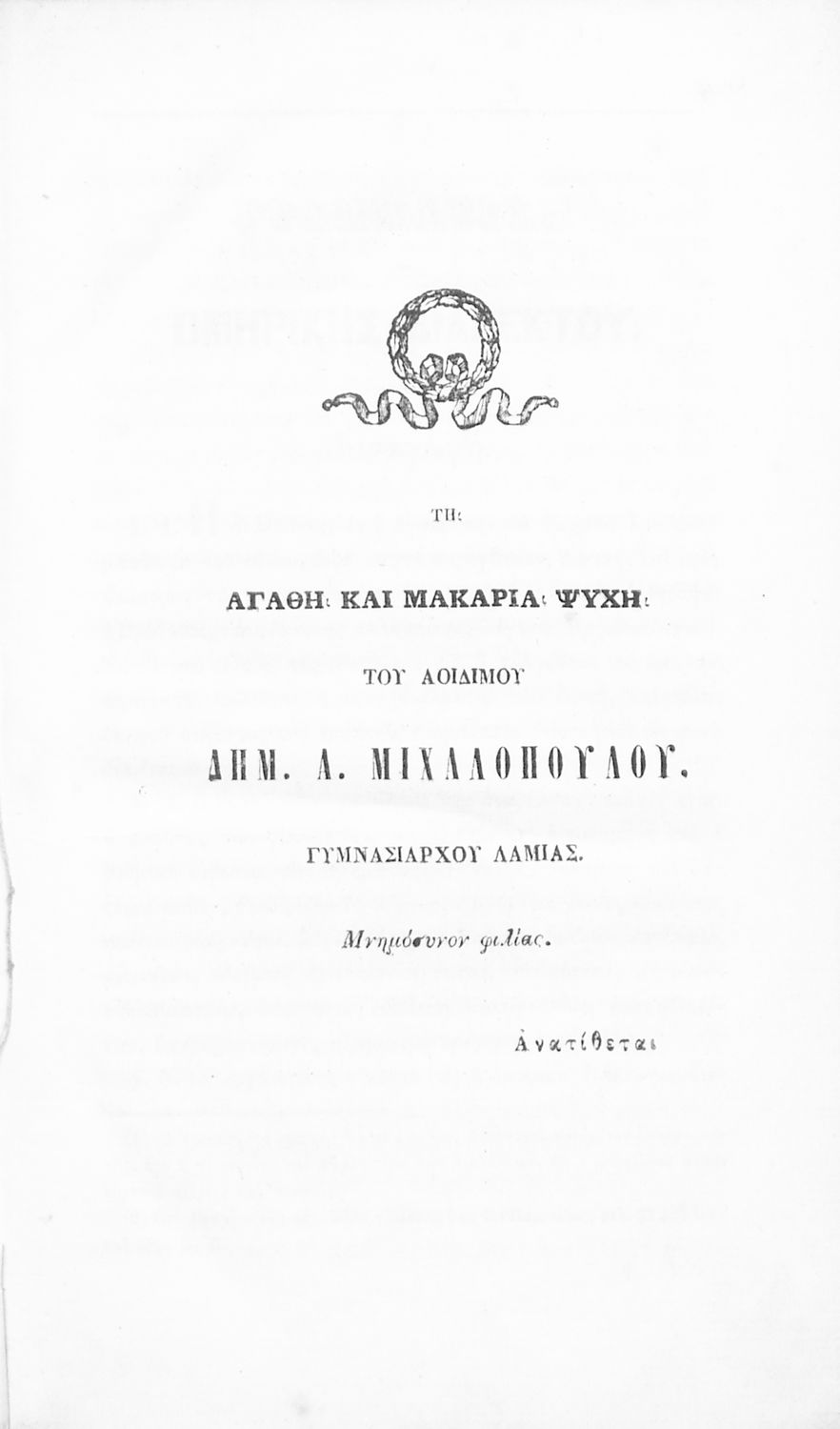 Εκδότης: Άγγελος Καναριώτης Έτος έκδοσης: 1867 Τόπος έκδοσης: Αθήνα |