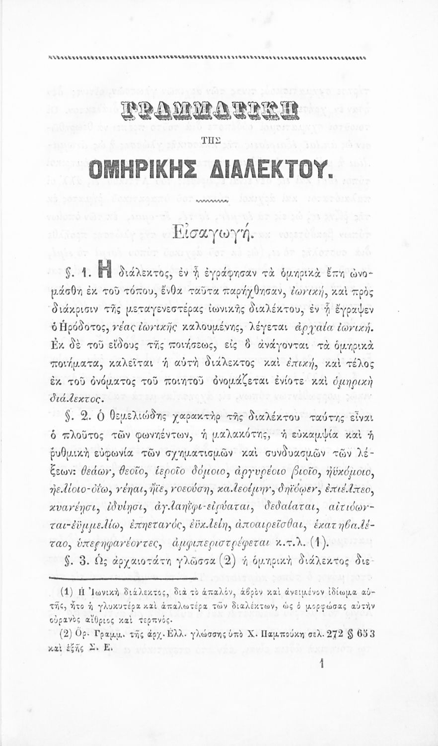 Σχολικό εγχειρίδιο Αρχαίων Ελληνικών Γυμνασίου που περιλαμβάνει γραμματική της ομηρικής διαλέκτου και εκτενή αναφορά στη δομή και το περιεχόμενο της ομηρικής ποίησης.