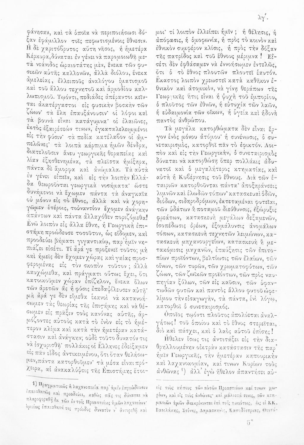 Σχολικό εγχειρίδιο αγρονομίας που προοριζόταν για τη διδασκαλία θεωρητικών και πρακτικών στοιχείων γεωργικής στους σπουδαστές του Λυκείου Κέρκυρας και του Ιονίου Γυμνασίου.