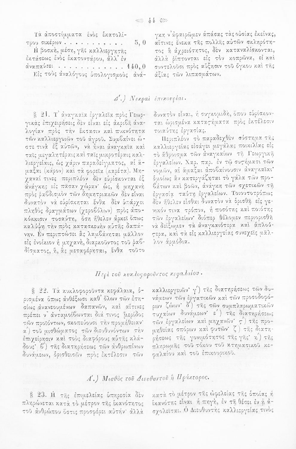 Σχολικό εγχειρίδιο αγρονομίας που προοριζόταν για τη διδασκαλία θεωρητικών και πρακτικών στοιχείων γεωργικής στους σπουδαστές του Λυκείου Κέρκυρας και του Ιονίου Γυμνασίου.