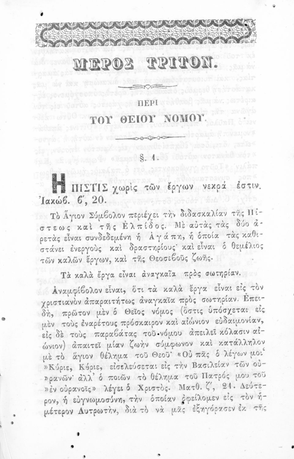Σχολικό εγχειρίδιο Θρησκευτικών για τα Ελληνικά Σχολεία και Παρθεναγωγεία που εστιάζει σε θέματα χριστιανικής ηθικής και σε δογματικά και ηθικά ζητήματα της ορθόδοξης κατήχησης.