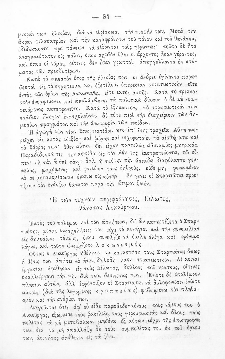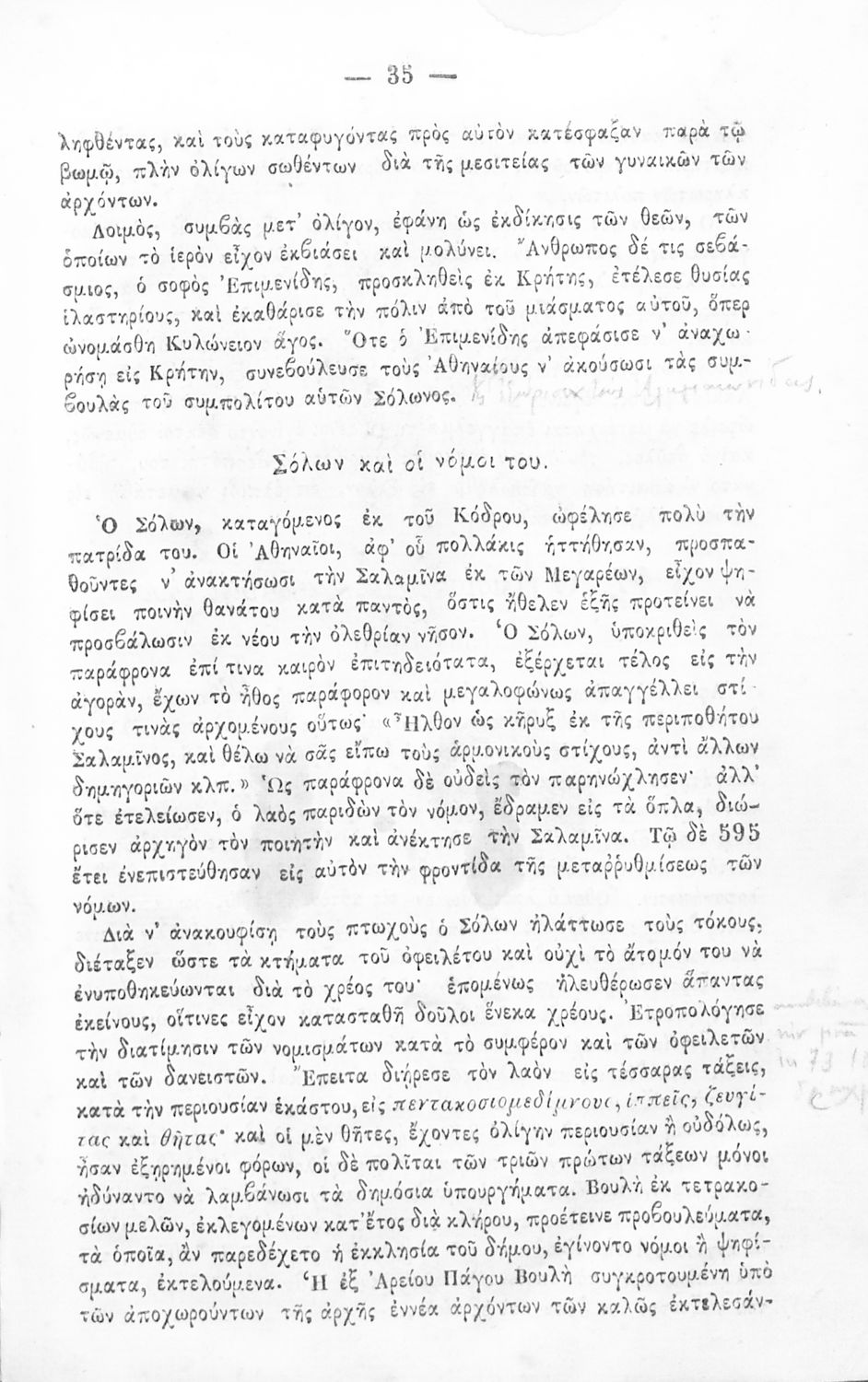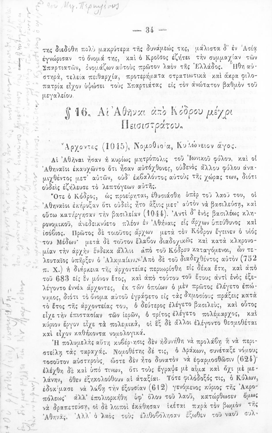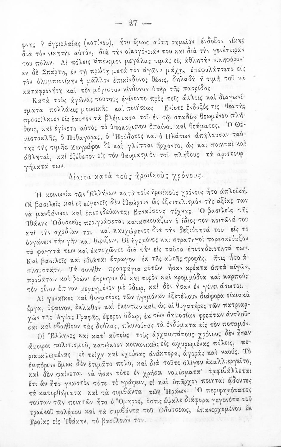 Σχολικό εγχειρίδιο Ιστορίας για τα Ελληνικά Σχολεία που αναφέρει τα γεγονότα από τα αρχαία χρόνια στην Ελλάδα. Τους Περσικούς Πολέμους, τον Πελοποννησιακό μέχρι τα ελληνιστικά χρόνια και το έργο του Μ. Αλέξανδρου. Συνεχίζει με την άνοδο της ρωμαϊκής αυτοκρατορίας. Συνοπτικά αναφέρεται η βυζαντινή αυτοκρατορία η πτώση και η κυριαρχία των Οθωμανών. Στο τέλος αναφέρεται στις ευρωπαϊκές εξελίξεις μέχρι τη Γαλλική Επανάσταση.