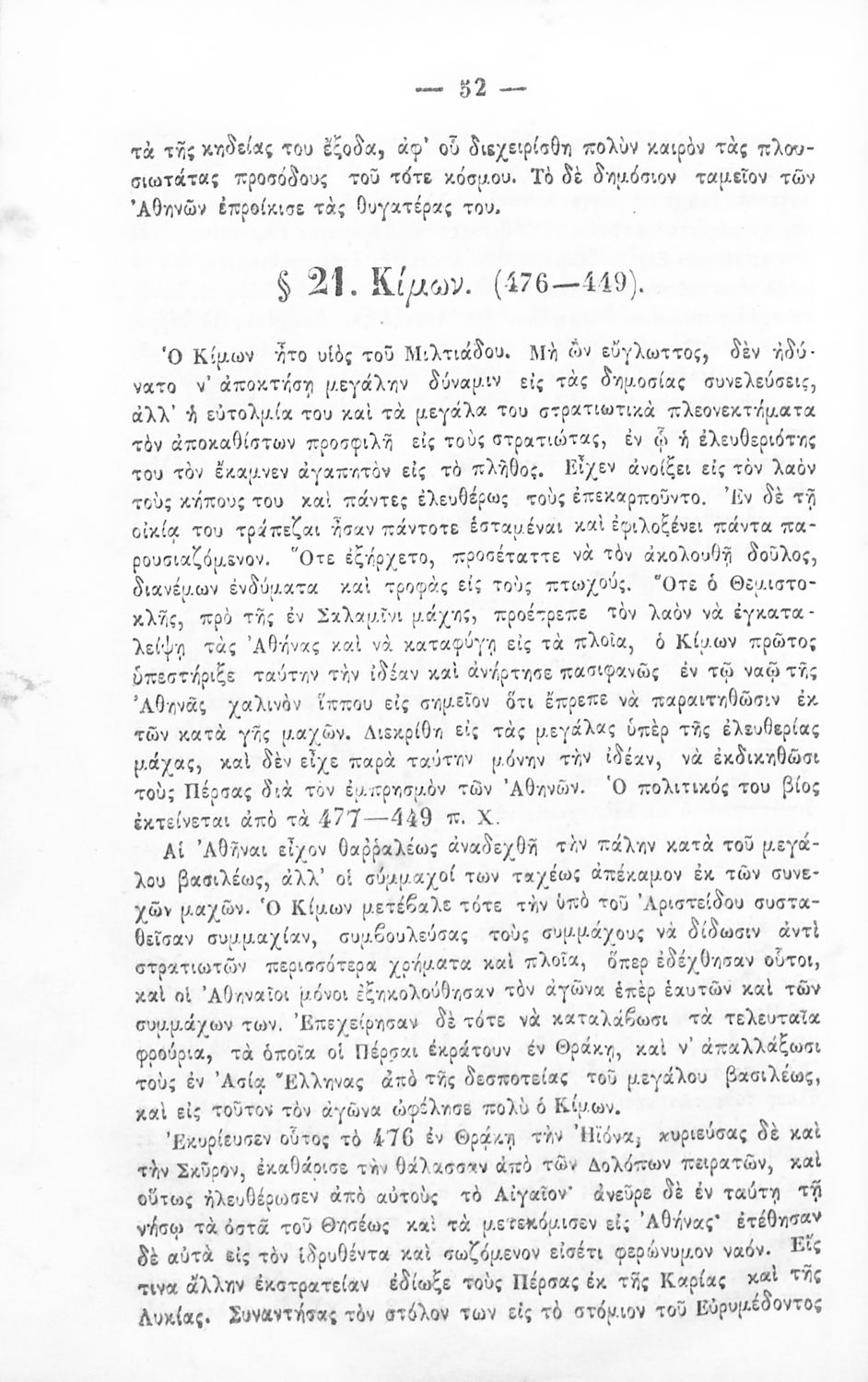 520 ## _aΣχολικό εγχειρίδιο Ιστορίας για τα Ελληνικά Σχολεία που αναφέρει τα γεγονότα από τα αρχαία χρόνια στην Ελλάδα. Τους Περσικούς Πολέμους, τον Πελοποννησιακό μέχρι τα ελληνιστικά χρόνια και το έργο του Μ. Αλέξανδρου. Συνεχίζει με την άνοδο της ρωμαϊκής αυτοκρατορίας. Συνοπτικά αναφέρεται η βυζαντινή αυτοκρατορία η πτώση και η κυριαρχία των Οθωμανών. Στο τέλος αναφέρεται στις ευρωπαϊκές εξελίξεις μέχρι τη Γαλλική Επανάσταση.