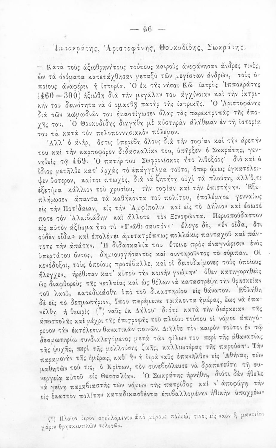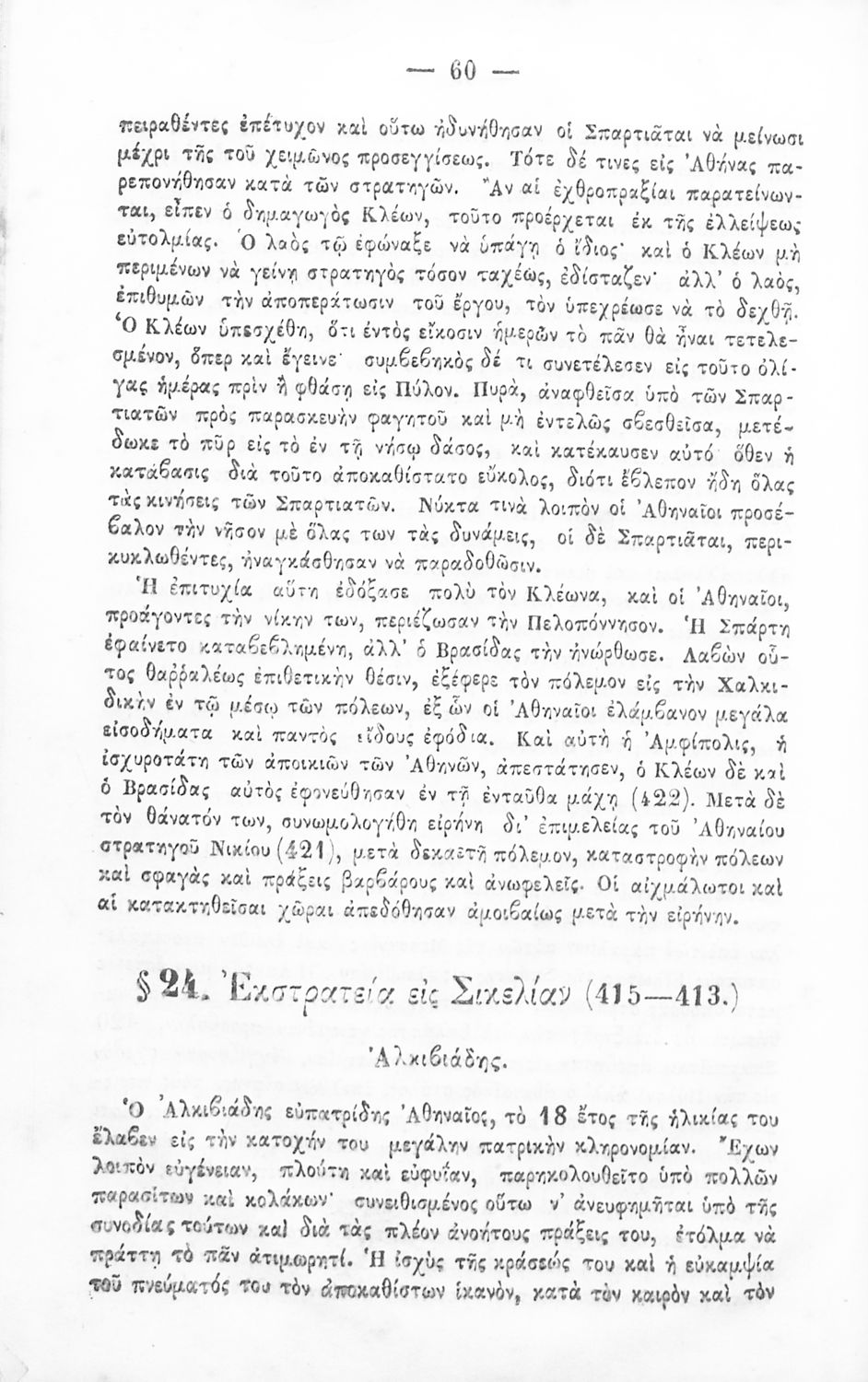 Σχολικό εγχειρίδιο Ιστορίας για τα Ελληνικά Σχολεία που αναφέρει τα γεγονότα από τα αρχαία χρόνια στην Ελλάδα. Τους Περσικούς Πολέμους, τον Πελοποννησιακό μέχρι τα ελληνιστικά χρόνια και το έργο του Μ. Αλέξανδρου. Συνεχίζει με την άνοδο της ρωμαϊκής αυτοκρατορίας. Συνοπτικά αναφέρεται η βυζαντινή αυτοκρατορία η πτώση και η κυριαρχία των Οθωμανών. Στο τέλος αναφέρεται στις ευρωπαϊκές εξελίξεις μέχρι τη Γαλλική Επανάσταση.