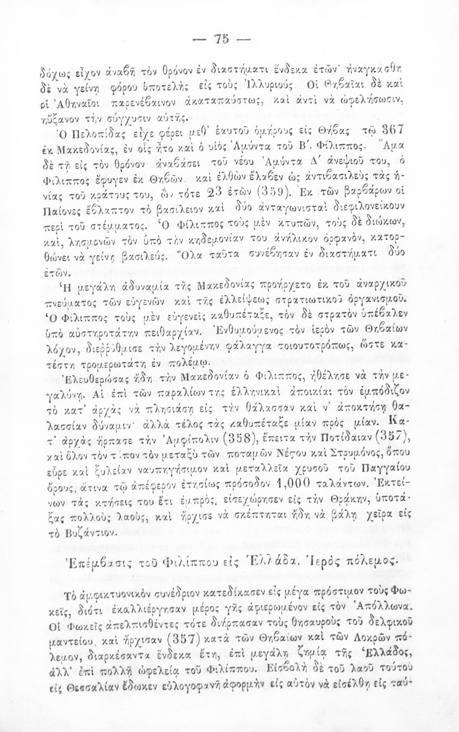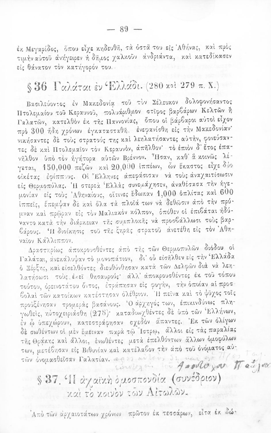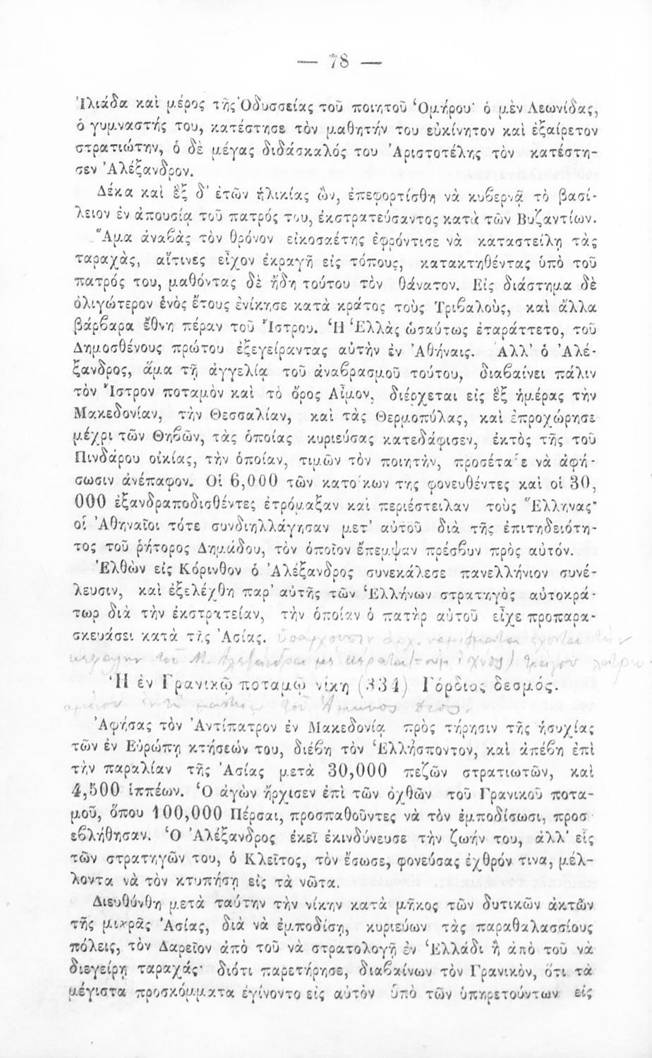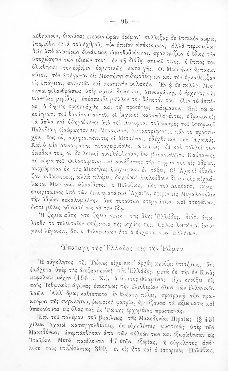 520 ## _aΣχολικό εγχειρίδιο Ιστορίας για τα Ελληνικά Σχολεία που αναφέρει τα γεγονότα από τα αρχαία χρόνια στην Ελλάδα. Τους Περσικούς Πολέμους, τον Πελοποννησιακό μέχρι τα ελληνιστικά χρόνια και το έργο του Μ. Αλέξανδρου. Συνεχίζει με την άνοδο της ρωμαϊκής αυτοκρατορίας. Συνοπτικά αναφέρεται η βυζαντινή αυτοκρατορία η πτώση και η κυριαρχία των Οθωμανών. Στο τέλος αναφέρεται στις ευρωπαϊκές εξελίξεις μέχρι τη Γαλλική Επανάσταση.