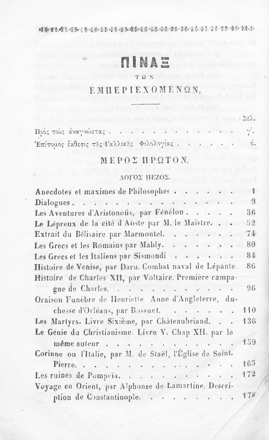Βαθμίδα εκπαίδευσης: Δευτεροβάθμια Μάθημα: Γαλλικά Γλώσσα: Καθαρεύουσα Παρουσίαση περιεχομένου: Σχολικό εγχειρίδιο Γαλλικών το οποίο περιέχει συλλογή λογοτεχνικών έργων Γάλλων συγγραφέων και επεξηγηματικές σημειώσεις. |