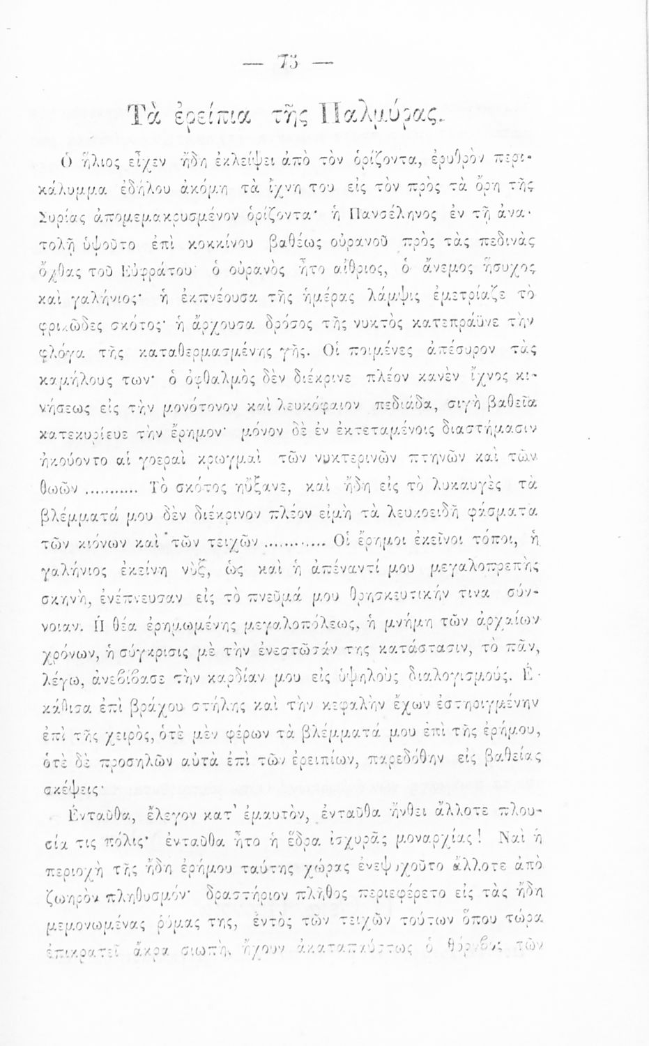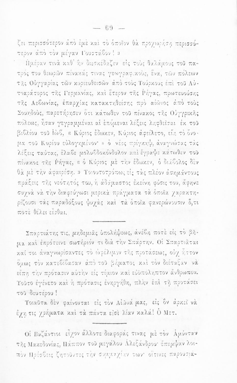 Το σύγγραμμα ήταν σχολικό εγχειρίδιο για το μάθημα της Γλώσσας. Πρόκειται για νεοελληνικά αναγνώσματα, το περιεχόμενο των οποίων αντλείται από τους ρητορικούς λόγους, τα θρησκευτικά διηγήματα, επιστημονικές ...