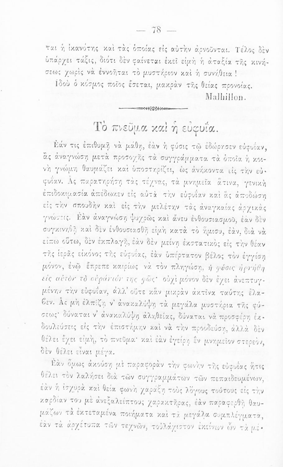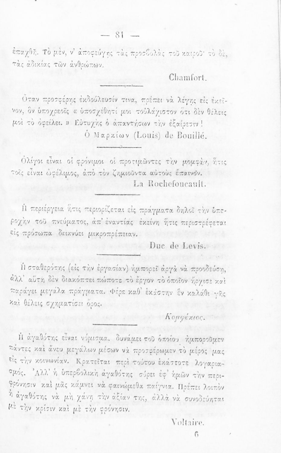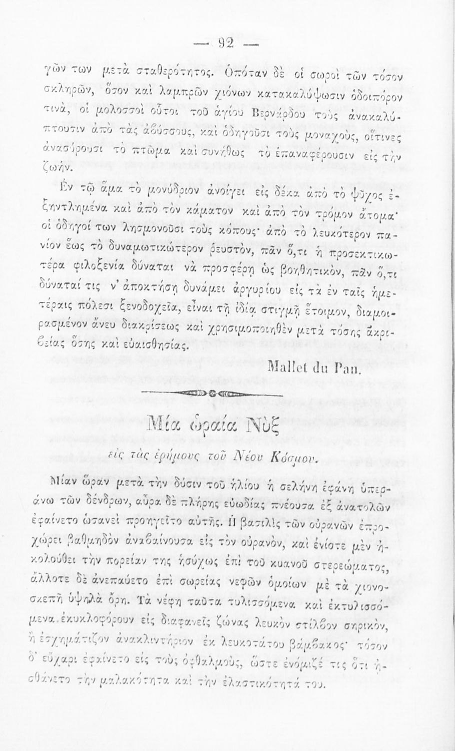 Αναγνωστικό Δημοτικού που περιέχει πλήθος διηγημάτων, ποιημάτων και γνωμικών Γάλλων συγγραφέων ηθοποιητικού περιεχομένου.
