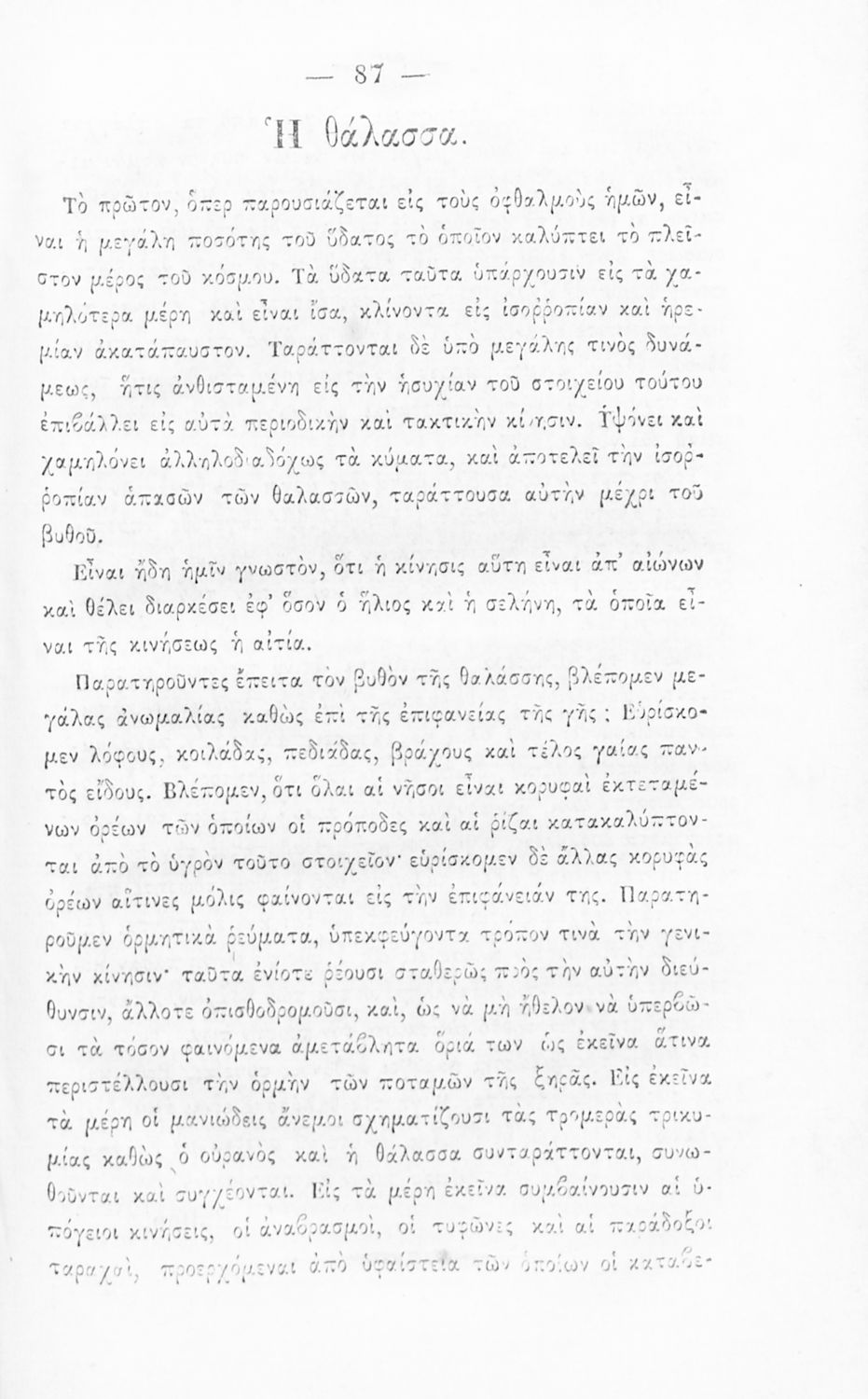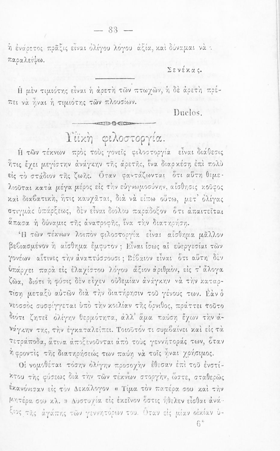 Το σύγγραμμα ήταν σχολικό εγχειρίδιο για το μάθημα της Γλώσσας. Πρόκειται για νεοελληνικά αναγνώσματα, το περιεχόμενο των οποίων αντλείται από τους ρητορικούς λόγους, τα θρησκευτικά διηγήματα, επιστημονικές ...
