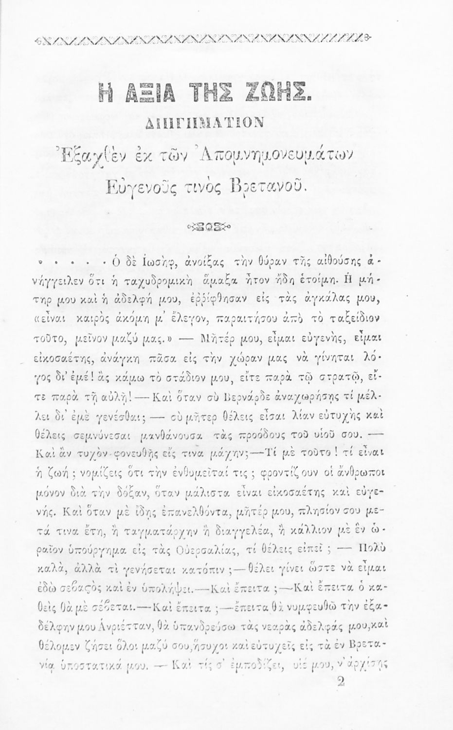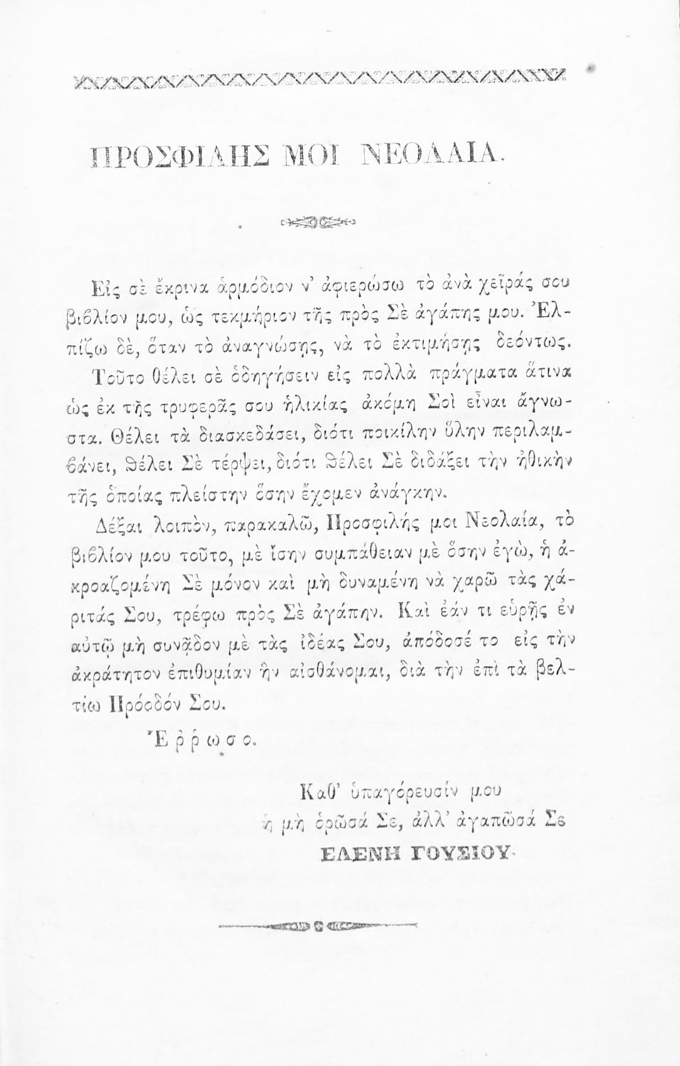 Τίτλος: Βιβλίον της νεολαίας, περιέχον παντοίας ιστορίας, διηγήματα, γνωμικά και αξιώματα εκ διαφόρων Γάλλων συγγραφέων, και εις την ημετέραν διάλεκτον μετενεχθέντα εν οις προσετέθησαν εξ Ελλήνων συγγραφέων τινά τεμάχια