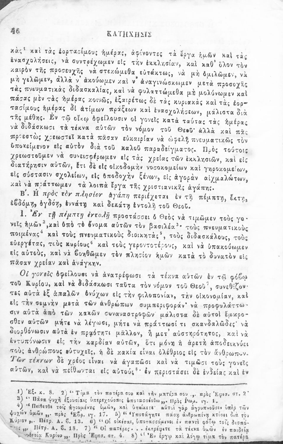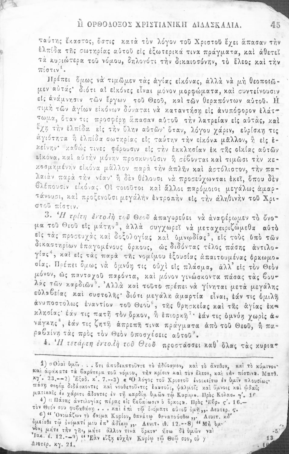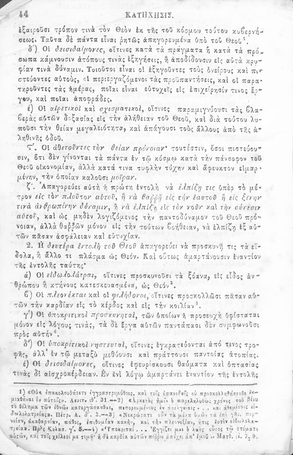 Βαθμίδα εκπαίδευσης: Δευτεροβάθμια Τάξη: Ελληνικό Σχολείο Μάθημα: Θρησκευτικά Γλώσσα: Καθαρεύουσα Παρουσίαση περιεχομένου: Σχολικό εγχειρίδιο Θρησκευτικών Ελληνικού Σχολείου που πραγματεύεται θέματα "φυσικής θεογνωσίας", ευαγγελικής πίστης και συνοπτικά την αξία της Κυριακάτικης προσευχής. |