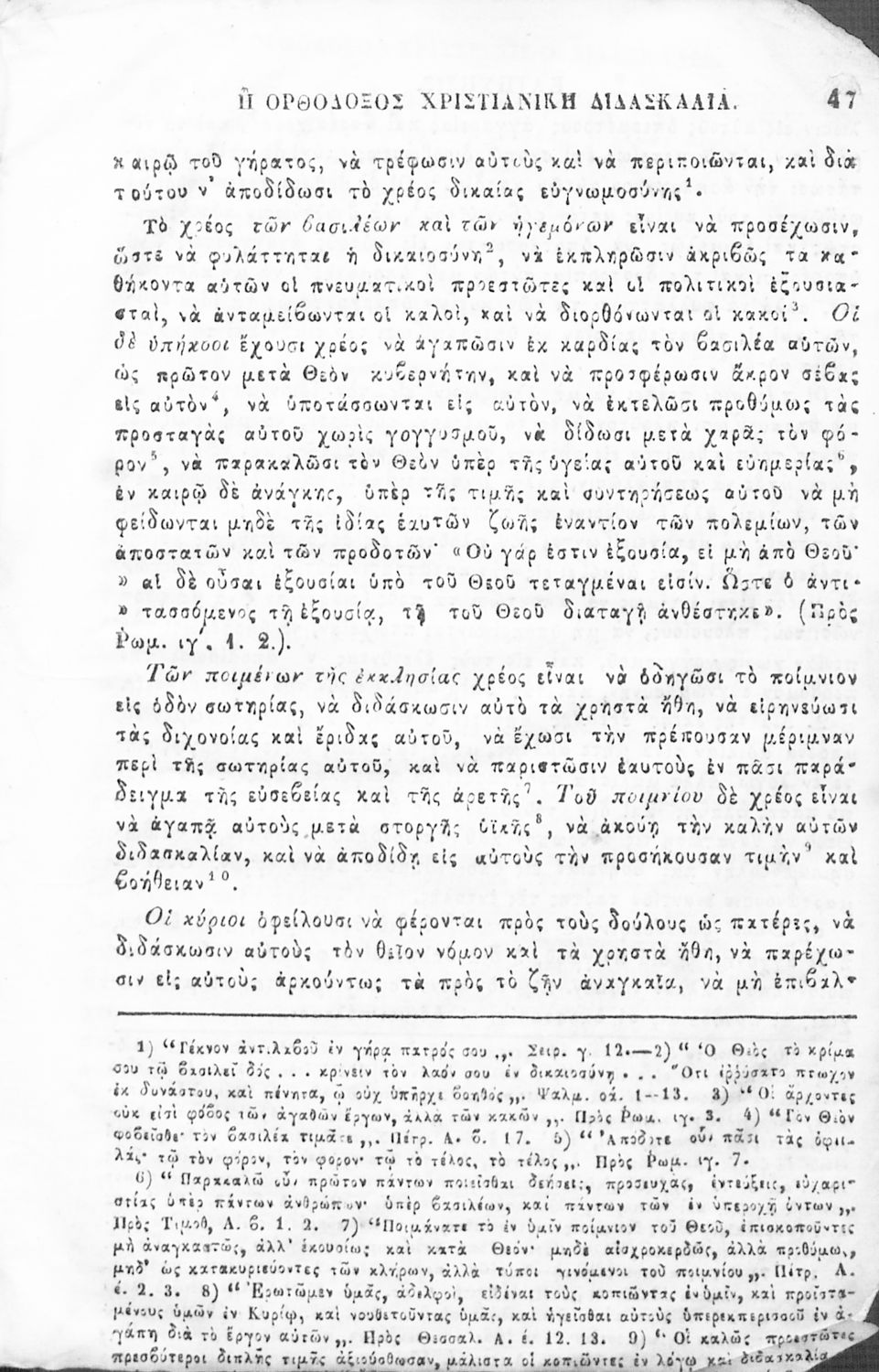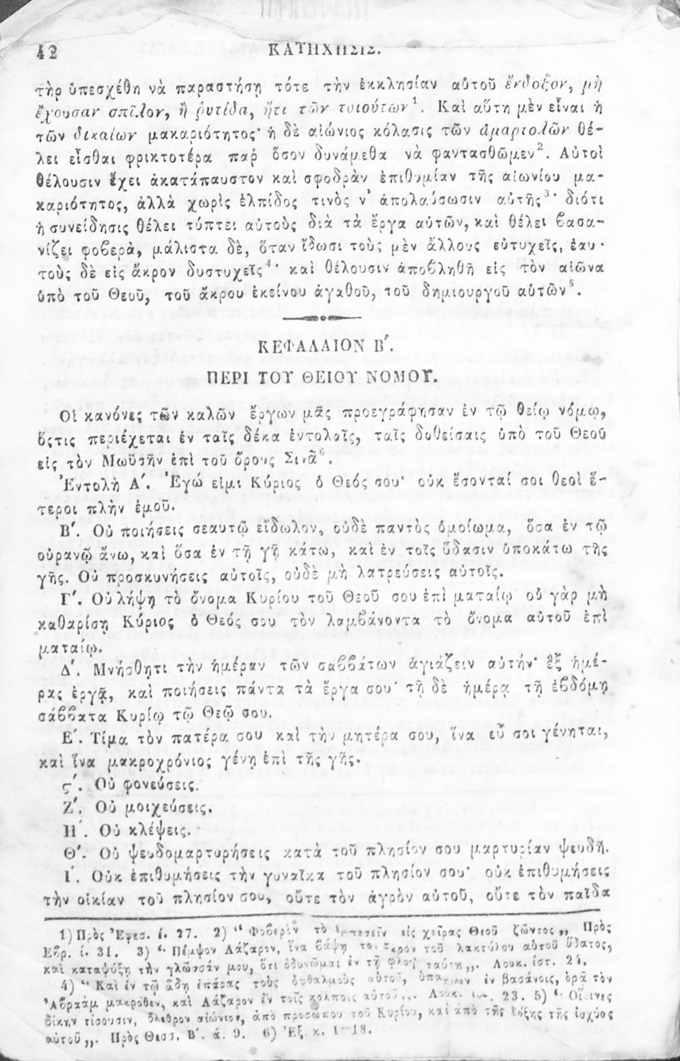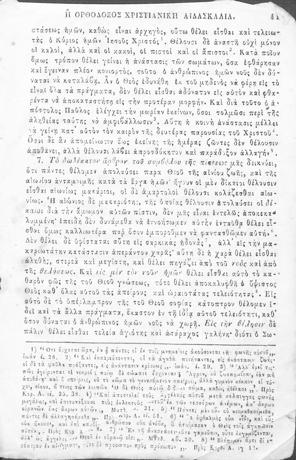 Βαθμίδα εκπαίδευσης: Δευτεροβάθμια Τάξη: Ελληνικό Σχολείο Μάθημα: Θρησκευτικά Γλώσσα: Καθαρεύουσα Παρουσίαση περιεχομένου: Σχολικό εγχειρίδιο Θρησκευτικών Ελληνικού Σχολείου που πραγματεύεται θέματα "φυσικής θεογνωσίας", ευαγγελικής πίστης και συνοπτικά την αξία της Κυριακάτικης προσευχής. |