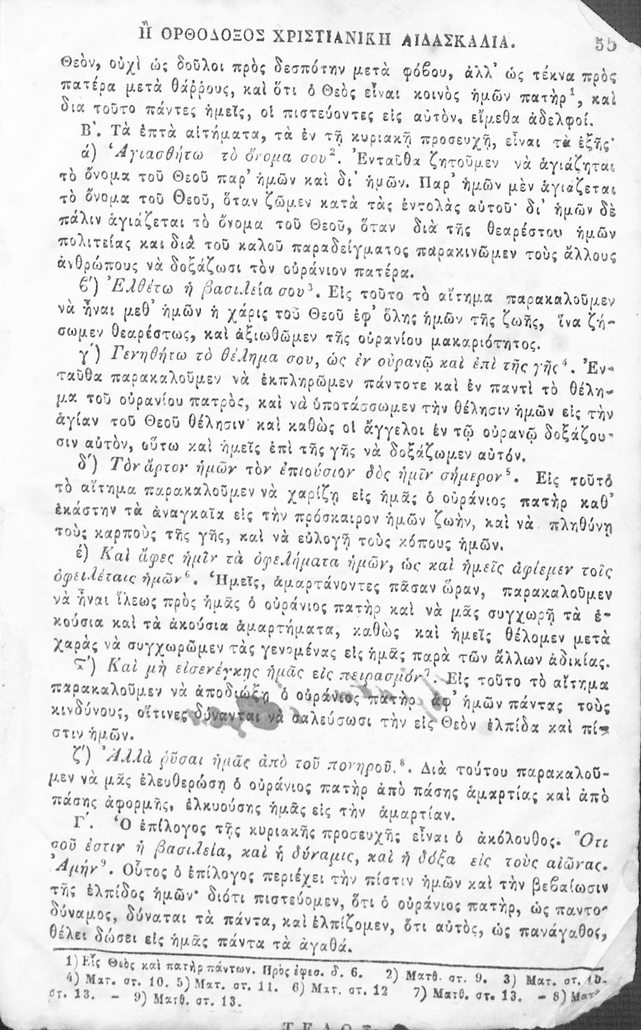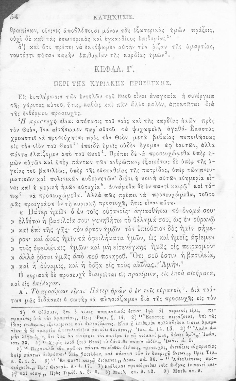 Σχολικό εγχειρίδιο Θρησκευτικών Ελληνικού Σχολείου που πραγματεύεται θέματα "φυσικής θεογνωσίας", ευαγγελικής πίστης και συνοπτικά την αξία της Κυριακάτικης προσευχής.