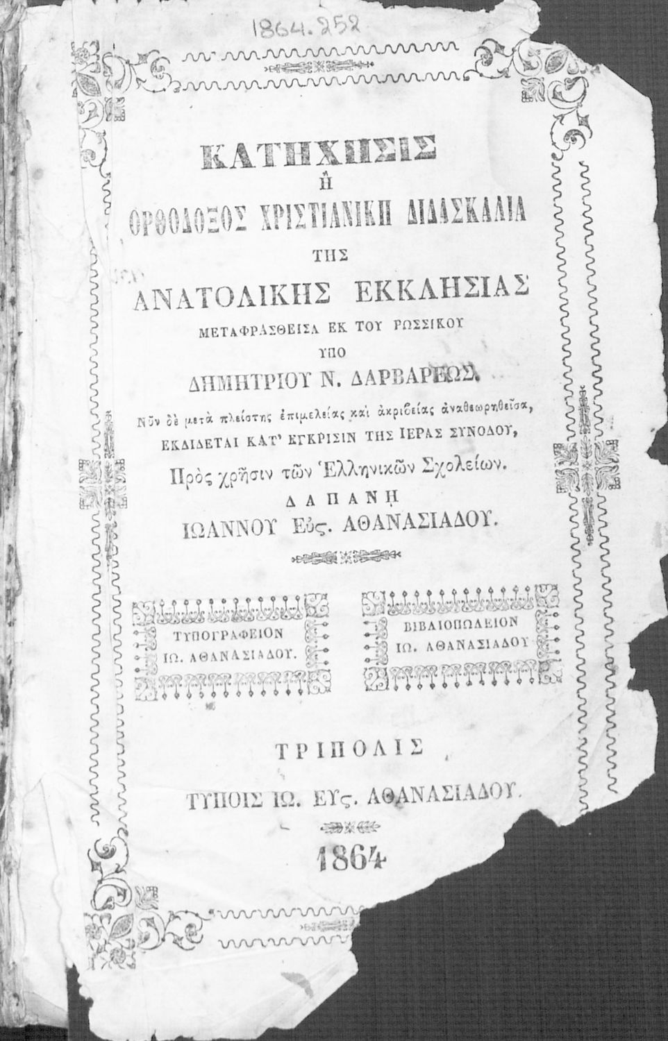 Τίτλος: Κατήχησις ή ορθόδοξος χριστιανική διδασκαλία της ανατολικής εκκλησίας προς χρήσιν των Ελληνικών Σχολείων