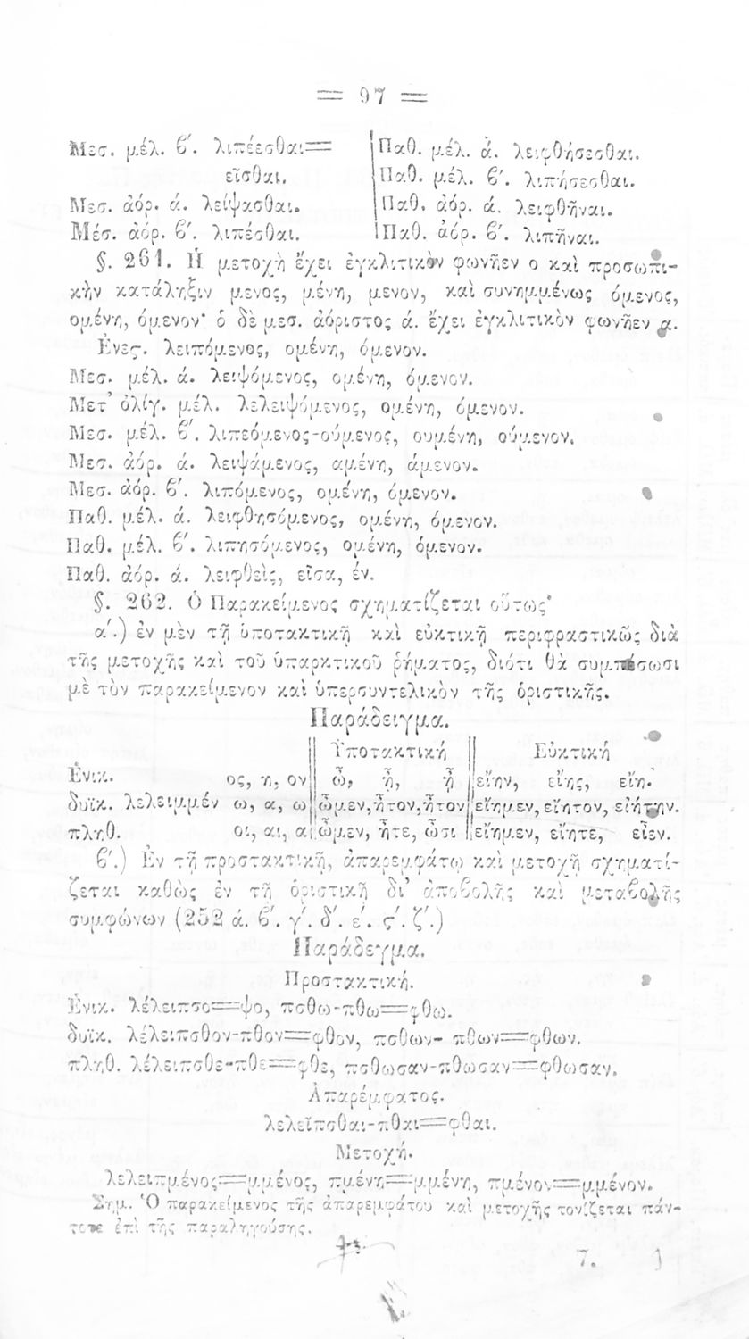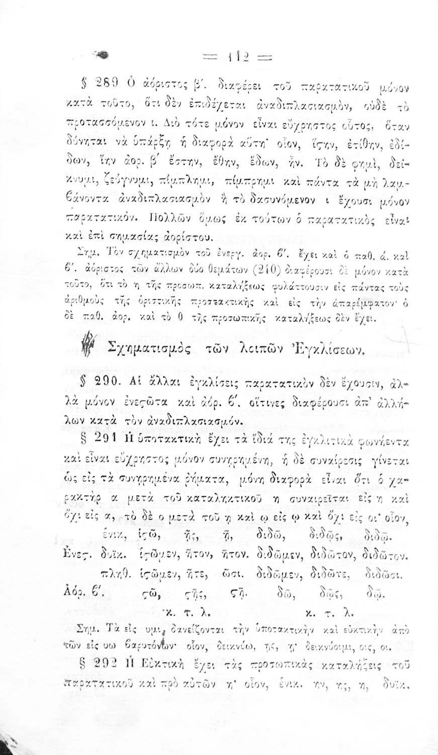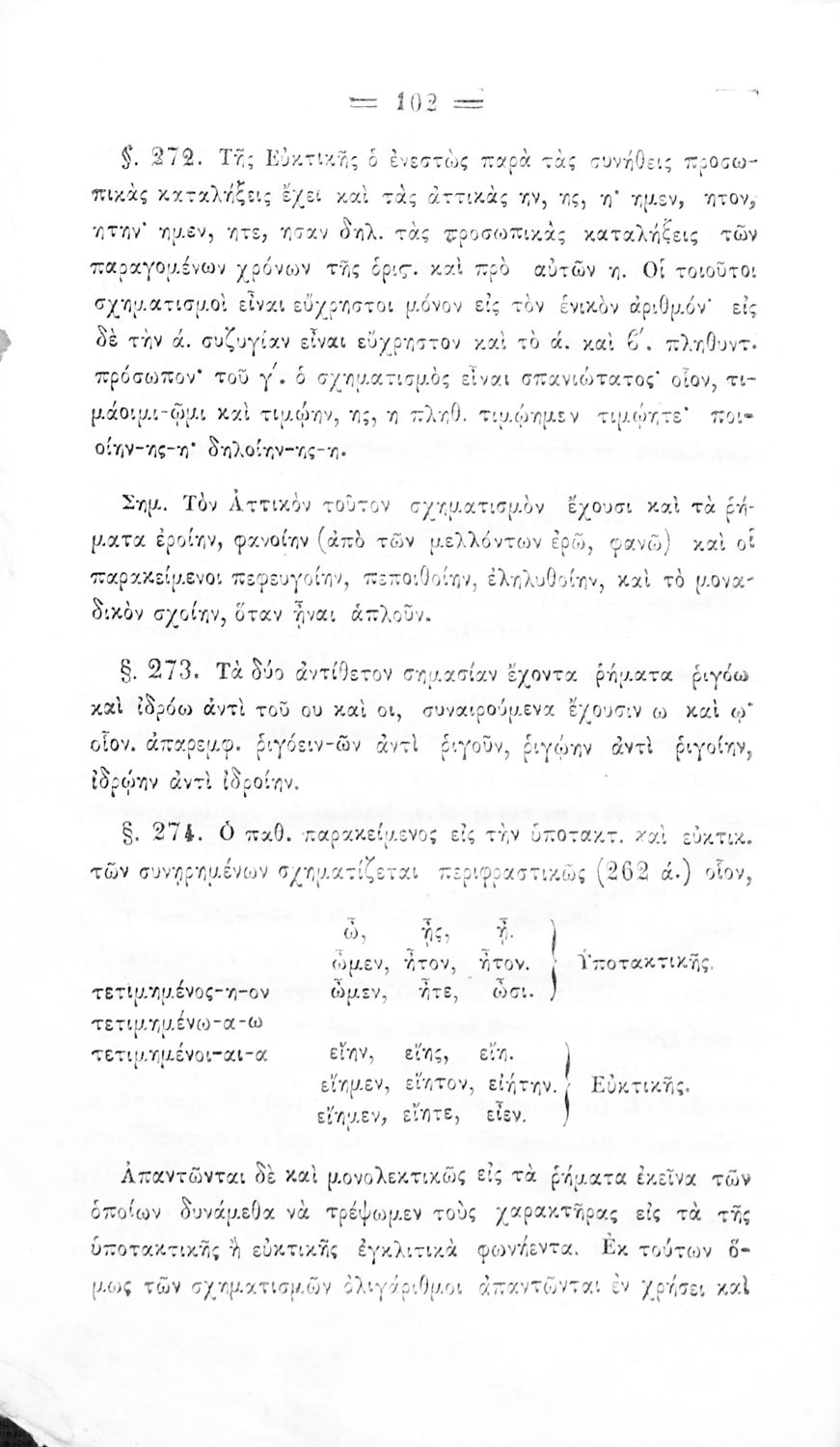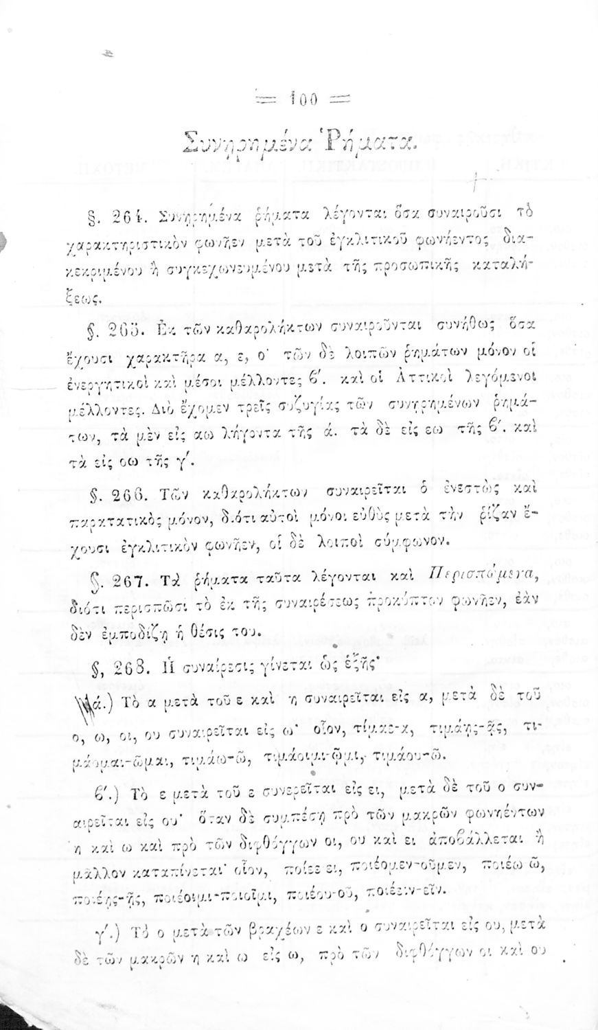 Σχολικό εγχειρίδιο Αρχαίων Ελληνικών για τα Ελληνικά Σχολεία και Παρθεναγωγεία που περιέχει τους κανόνες γραμματικής και είναι χωρισμένο σε φθογγολογικό, τυπολογικό και ετυμολογικό μέρος.