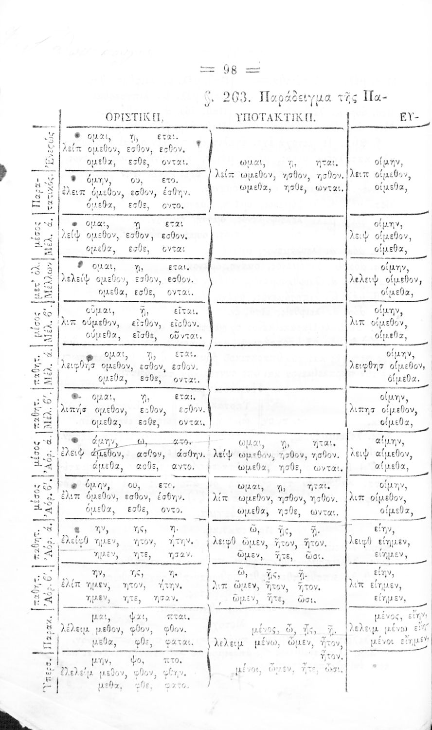 Μαθητικό βοήθημα Αρχαίων Ελληνικών για τα Ελληνικά Σχολεία, Παρθεναγωγεία και Γυμνάσια που περιλαμβάνει γραμματική της αρχαίας ελληνικής και κατάλογο ανωμάλων ρημάτων.