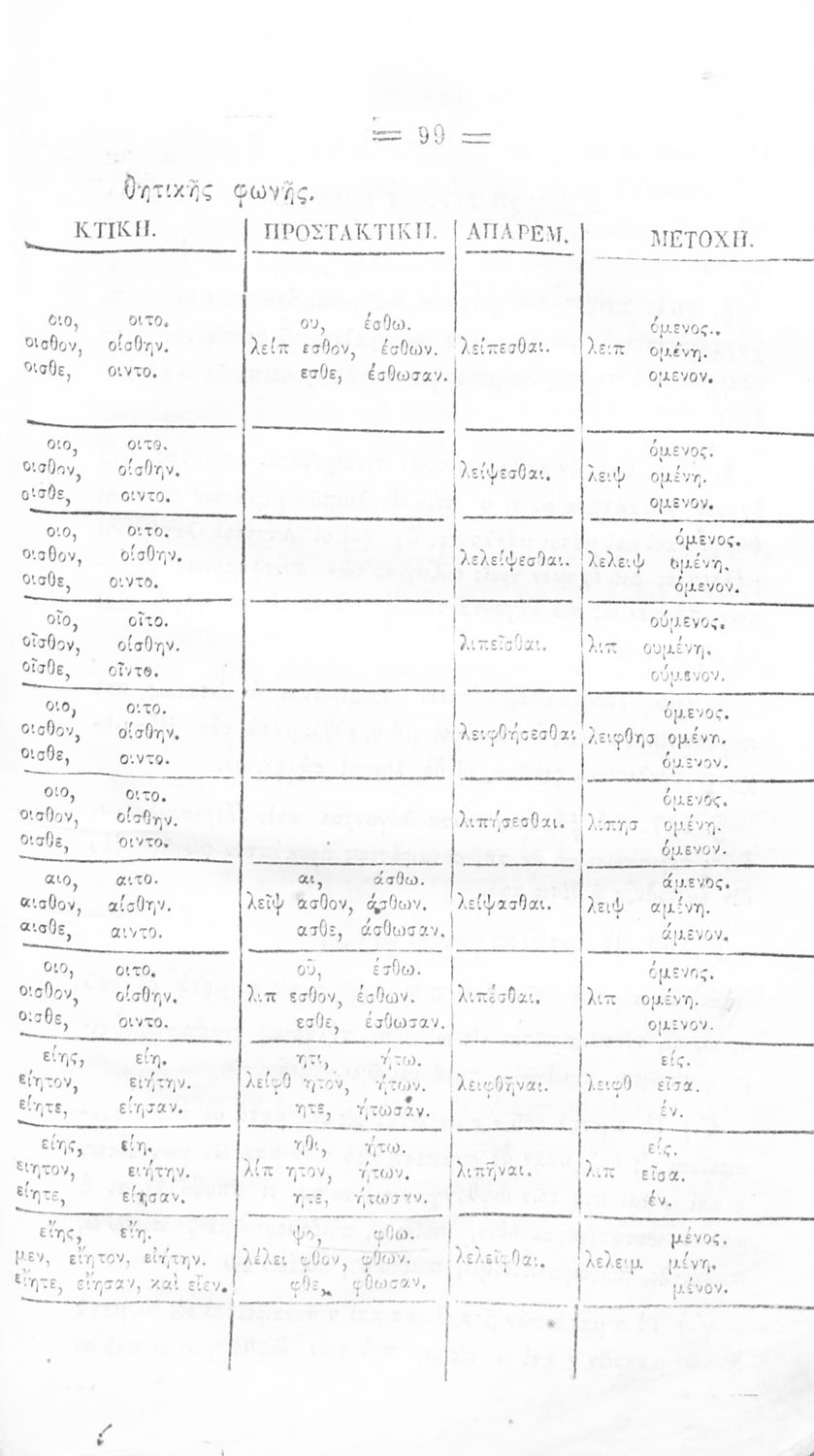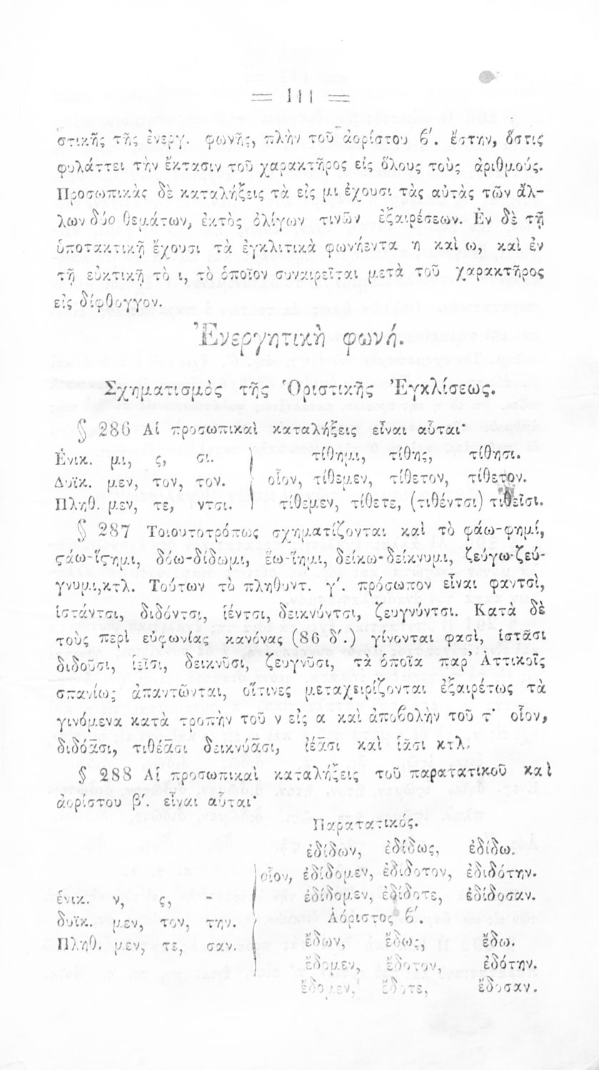 Σχολικό εγχειρίδιο Αρχαίων Ελληνικών για τα Ελληνικά Σχολεία και Παρθεναγωγεία που περιλαμβάνει κανόνες της γραμματικής της αρχαίας ελληνικής και είναι χωρισμένη στο φθογγολογικό και στο τυπολογικό μέρος.