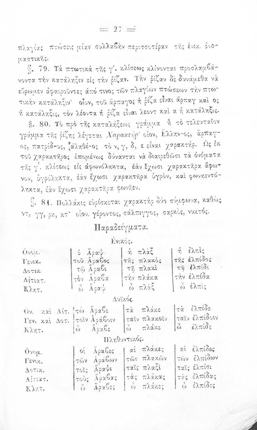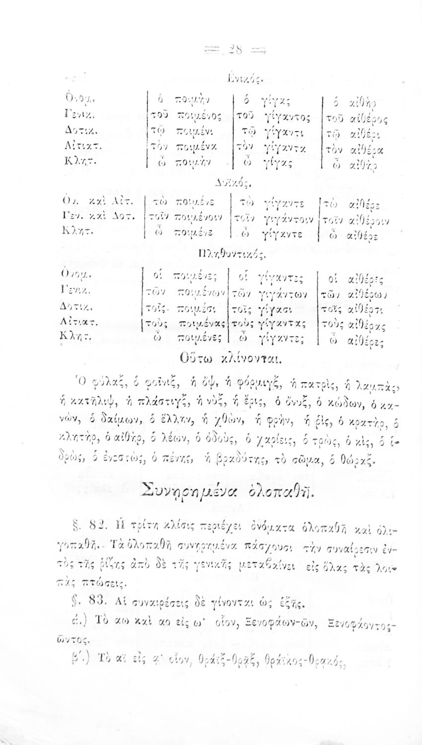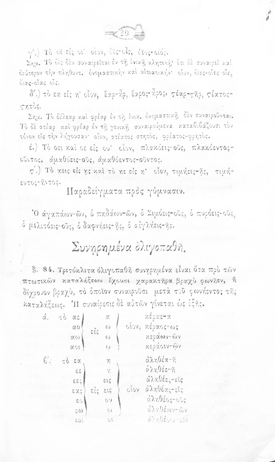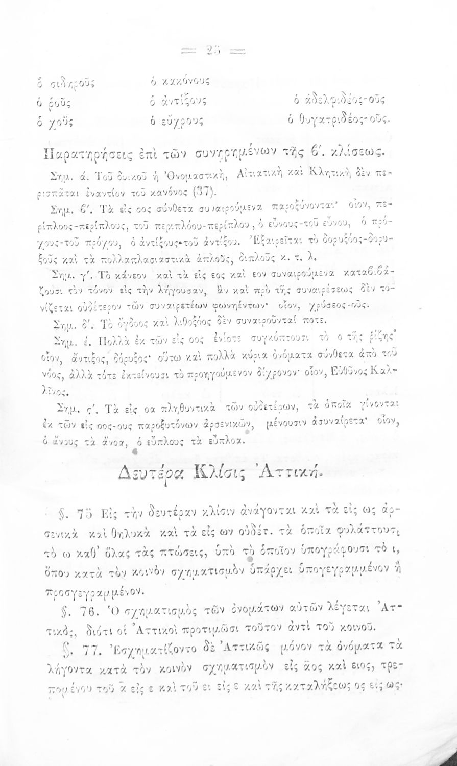 Σχολικό εγχειρίδιο Αρχαίων Ελληνικών για τα Ελληνικά Σχολεία και Παρθεναγωγεία που περιλαμβάνει κανόνες της γραμματικής της αρχαίας ελληνικής και είναι χωρισμένη στο φθογγολογικό και στο τυπολογικό μέρος.