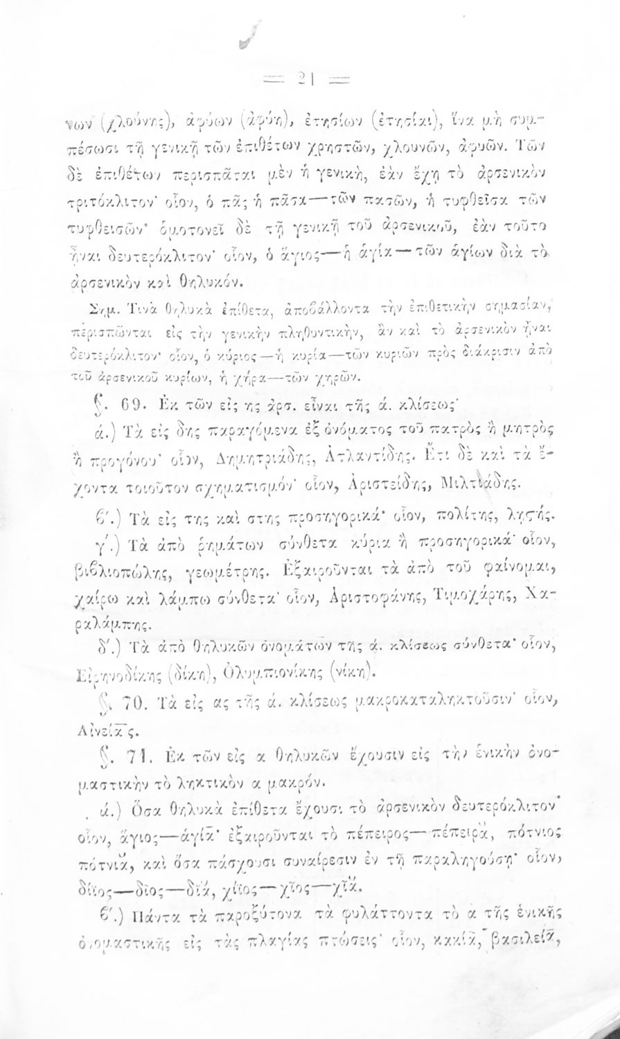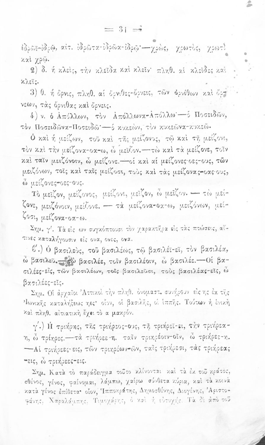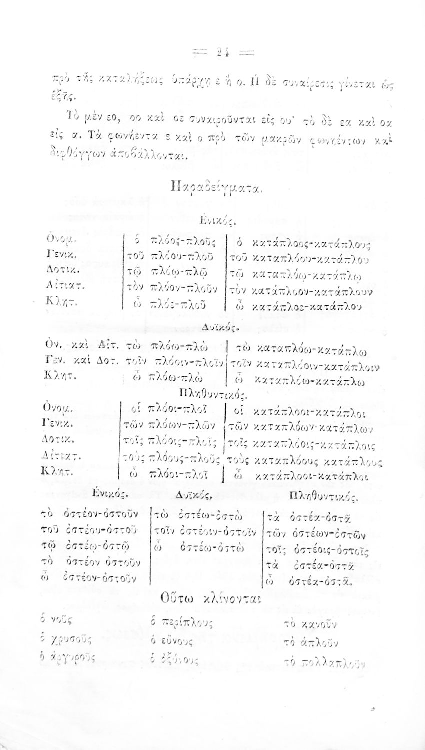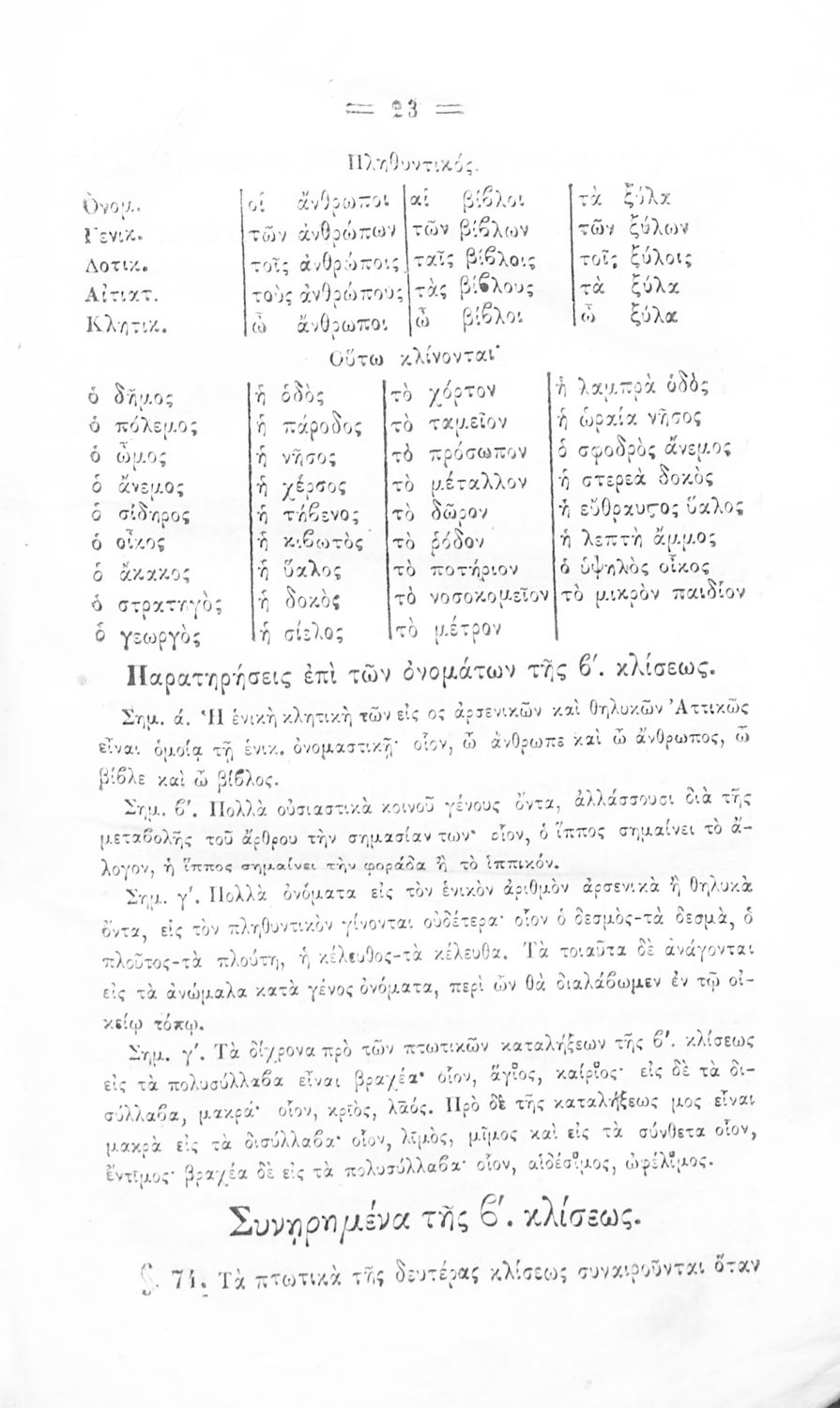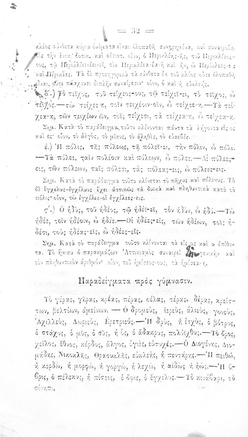 Σχολικό εγχειρίδιο Αρχαίων Ελληνικών για τα Ελληνικά Σχολεία και Παρθεναγωγεία που περιέχει τους κανόνες γραμματικής και είναι χωρισμένο σε φθογγολογικό, τυπολογικό και ετυμολογικό μέρος.