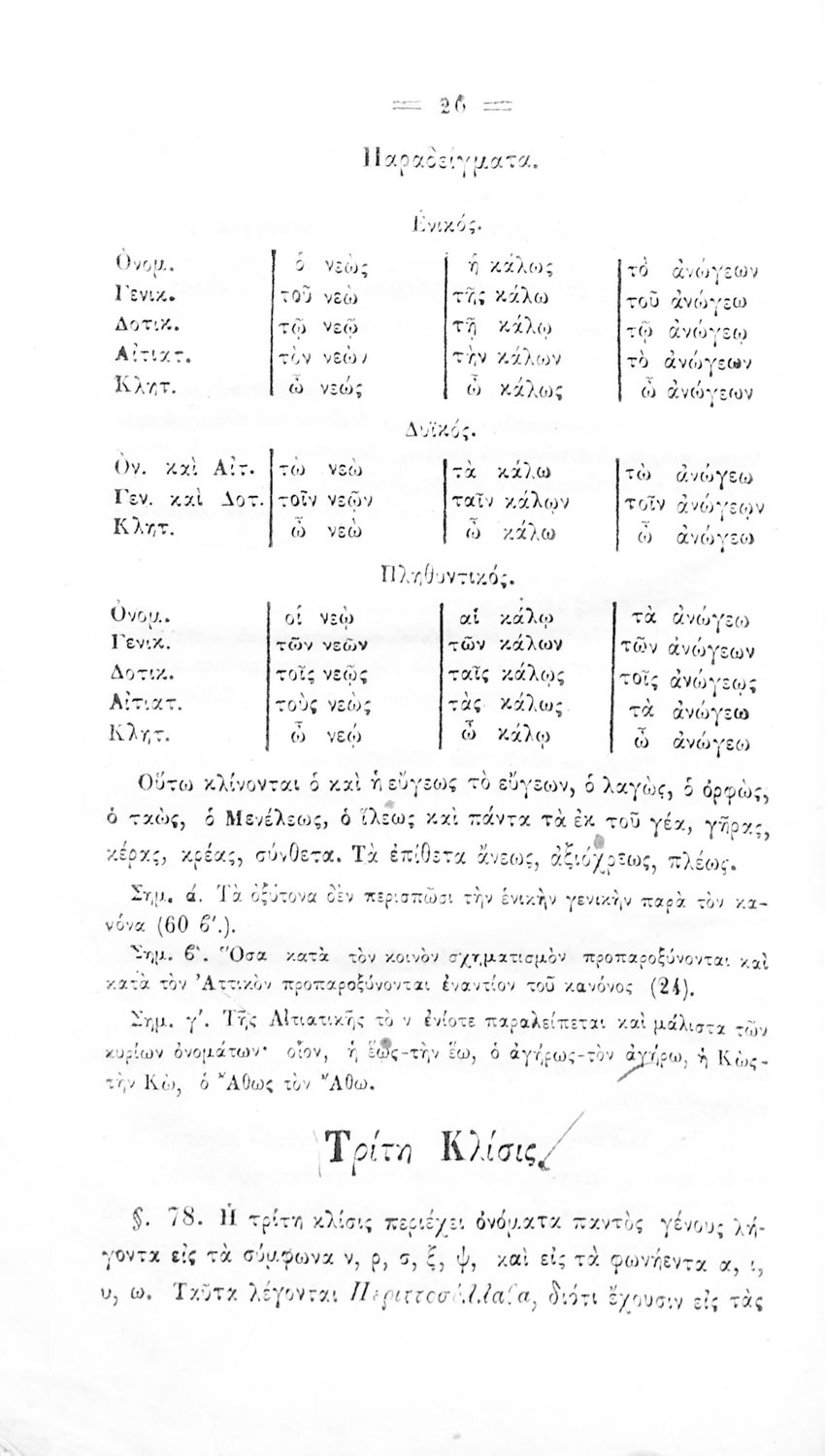 Σχολικό εγχειρίδιο Αρχαίων Ελληνικών για τα Ελληνικά Σχολεία και Παρθεναγωγεία που αποτελεί γραμματική της αρχαίας ελληνικής και είναι χωρισμένο στο φθογγολογικό και το τυπολογικό μέρος.