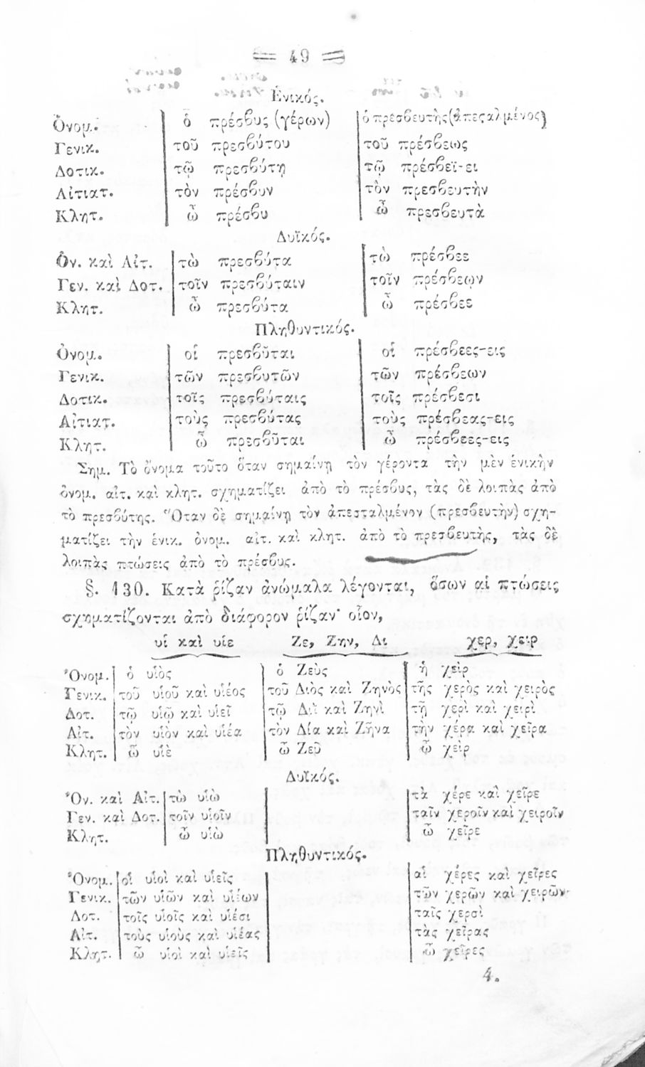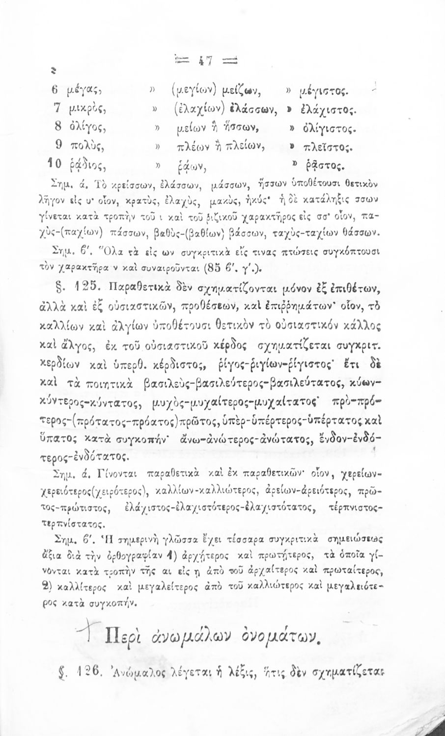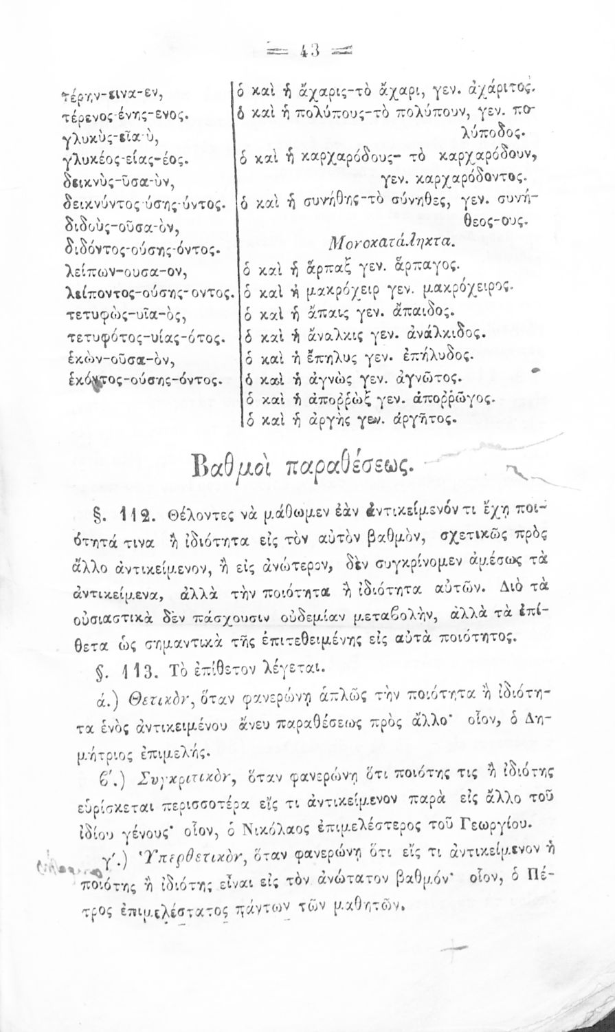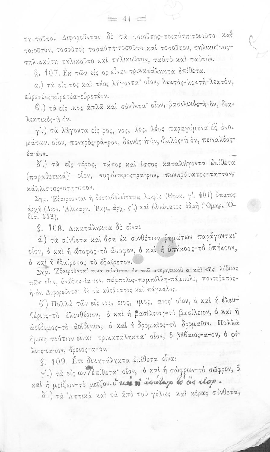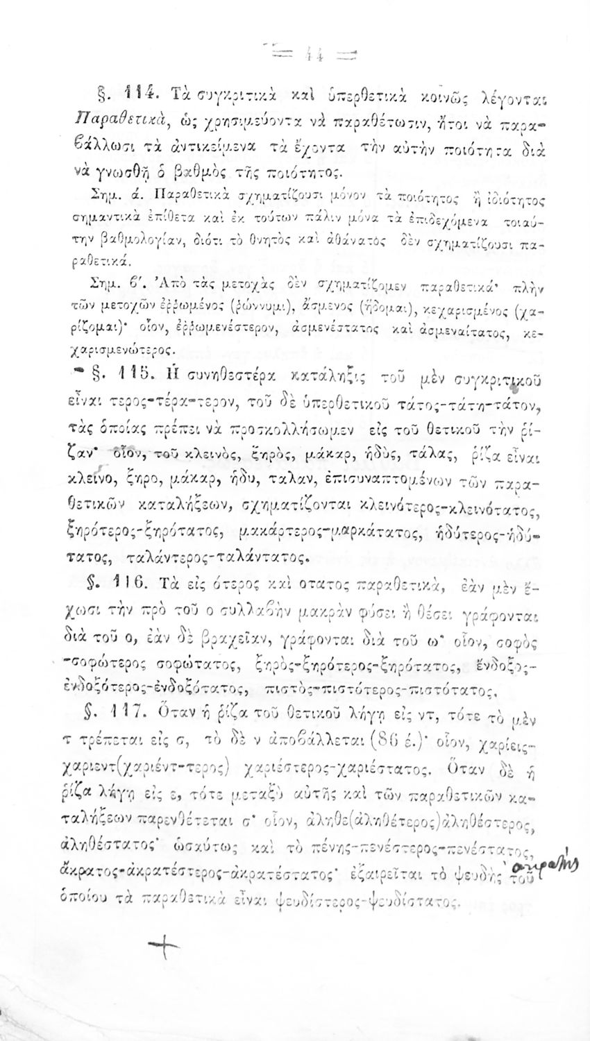 Σχολικό εγχειρίδιο Αρχαίων Ελληνικών για τα Ελληνικά Σχολεία και Παρθεναγωγεία που περιέχει τους κανόνες γραμματικής και είναι χωρισμένο σε φθογγολογικό, τυπολογικό και ετυμολογικό μέρος.