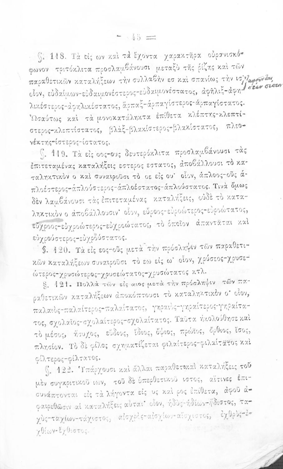 Σχολικό εγχειρίδιο Αρχαίων Ελληνικών για τα Ελληνικά Σχολεία, Παρθεναγωγεία και Γυμνάσια που περιέχει τους κανόνες γραμματικής και είναι χωρισμένο σε φθογγολογικό, τυπολογικό και ετυμολογικό μέρος.