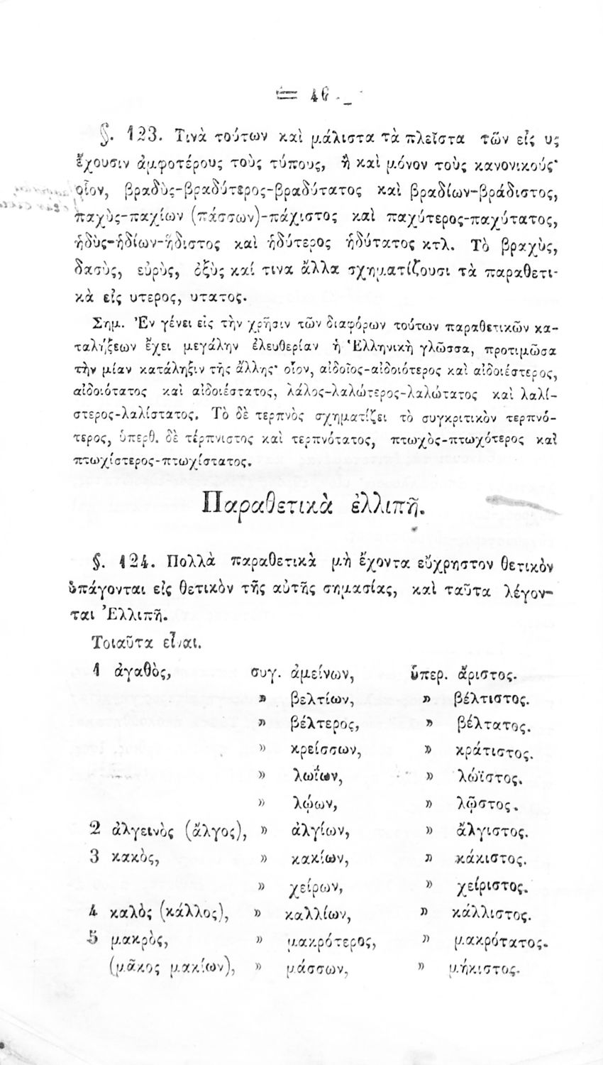 Σχολικό εγχειρίδιο Αρχαίων Ελληνικών για τα Ελληνικά Σχολεία και Παρθεναγωγεία που περιλαμβάνει κανόνες της γραμματικής της αρχαίας ελληνικής και είναι χωρισμένη στο φθογγολογικό και στο τυπολογικό μέρος.