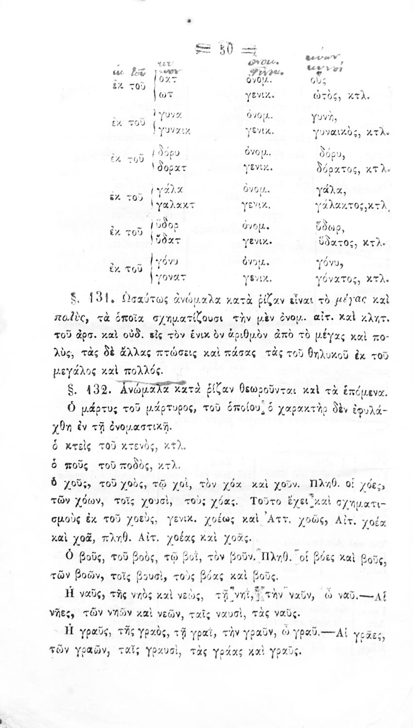 Σχολικό εγχειρίδιο Αρχαίων Ελληνικών Γυμνασίου που περιλαμβάνει τους κανόνες γραμματικής και είναι χωρισμένη στο φθογγολογικό, το τυπολογικό και ετυμολογικό μέρος.