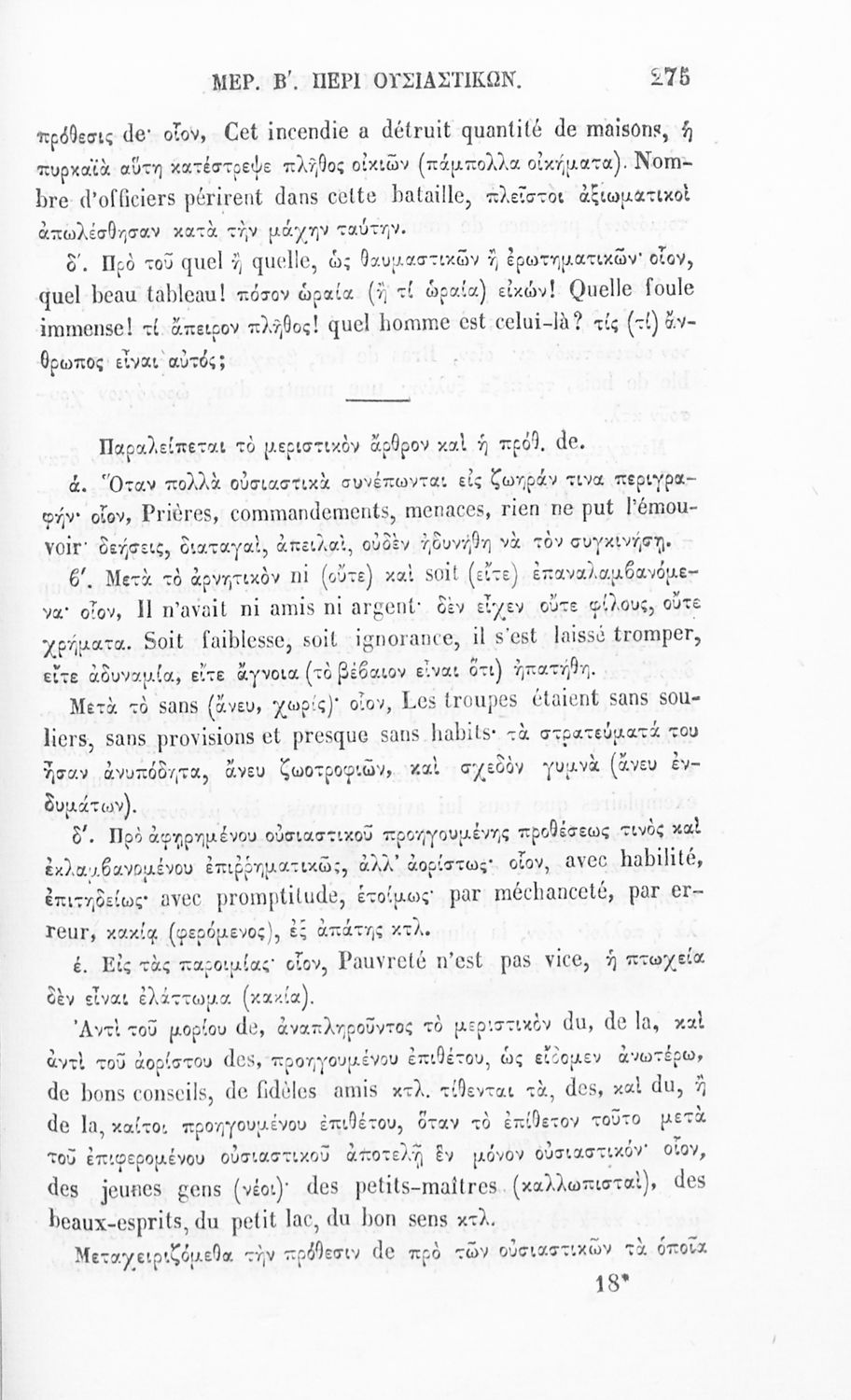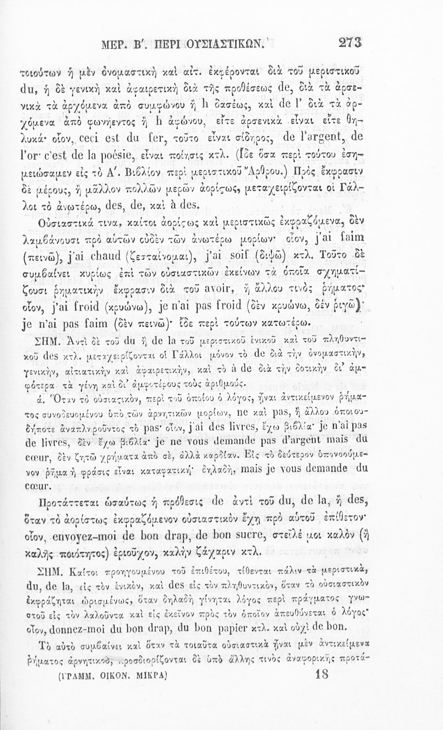 Γραμματική της Γαλλικής γλώσσας για τα Ελληνικά Σχολεία και Παρθεναγωγεία που αναλύει τα μέρη του λόγου και περιέχει παραδείγματα και ασκήσεις.