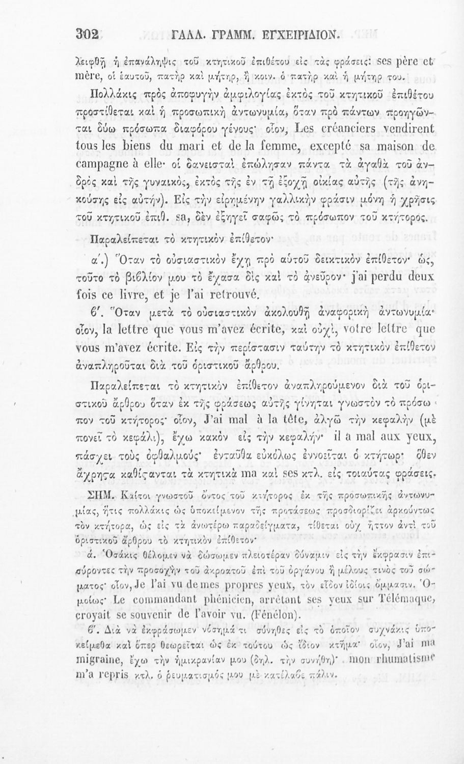 Εγχειρίδιον γαλλικής γραμματικής, προς χρήσιν των Ελληνικών Σχολείων και των σπουδαστών της Γαλλικής γλώσσης