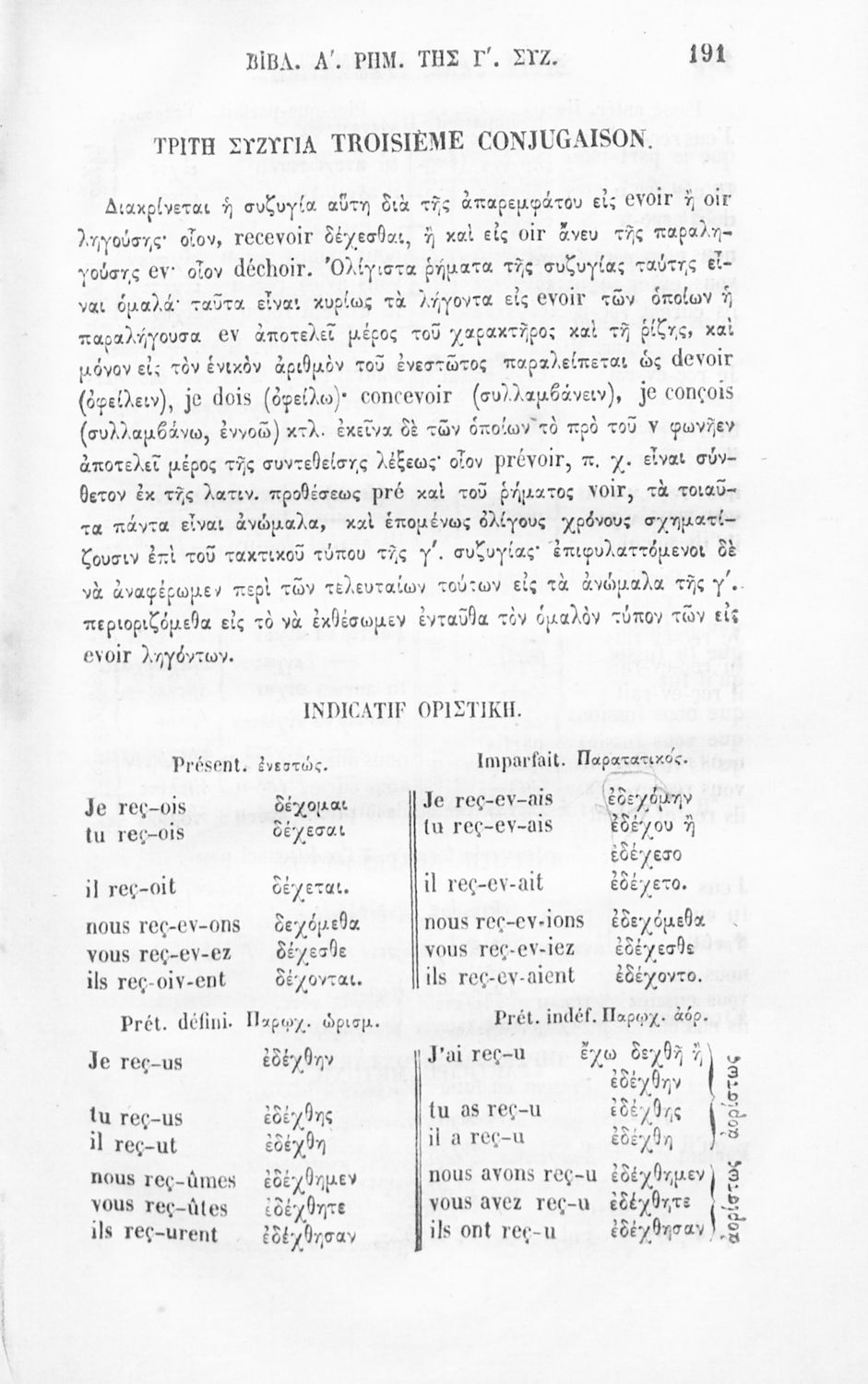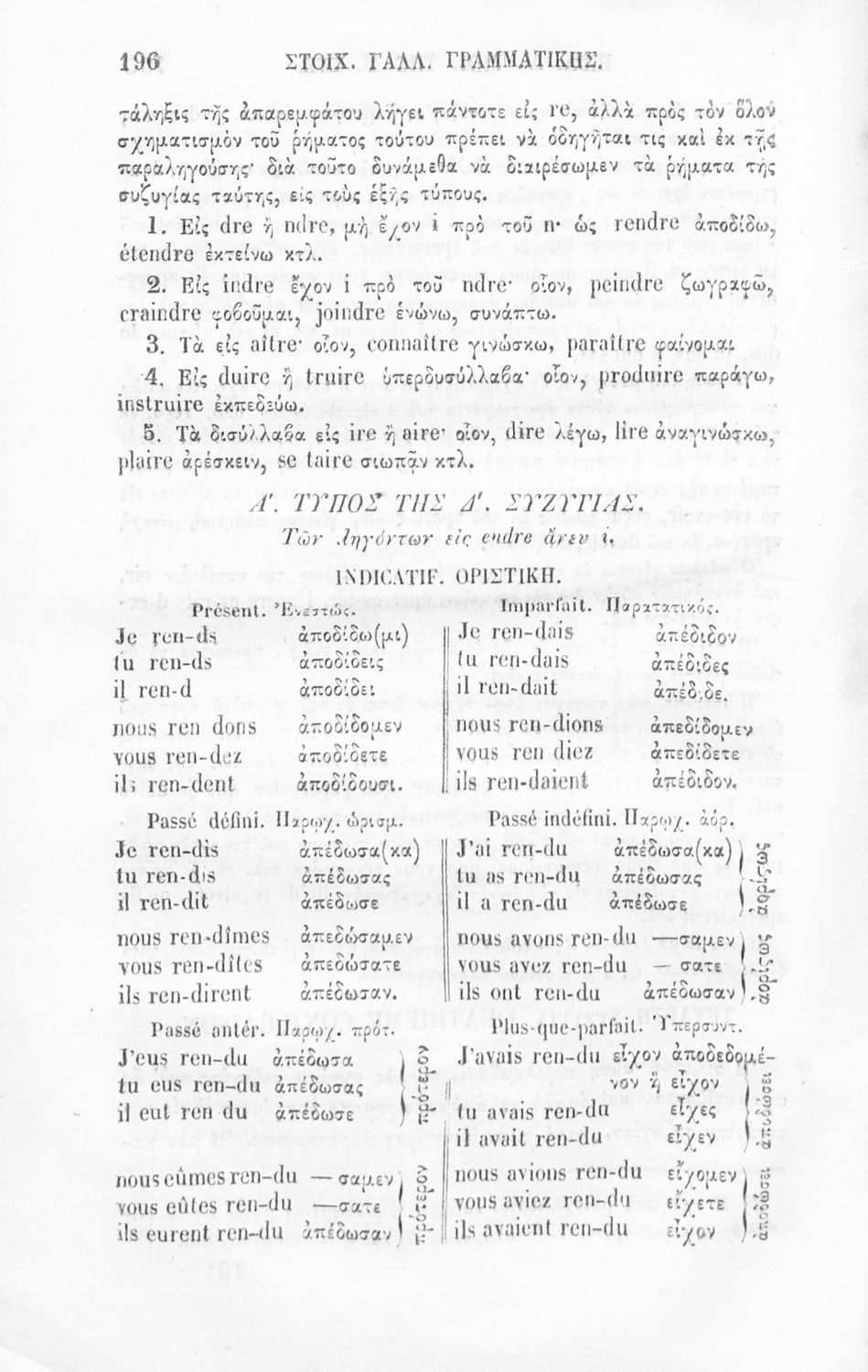 Μαθητικό βοήθημα που περιέχει τους κανόνες γραμματικής της γαλλικής γλώσσας και είναι χωρισμένο σε τεχνολογικό και ετυμολογικό/ορθογραφικό μέρος.