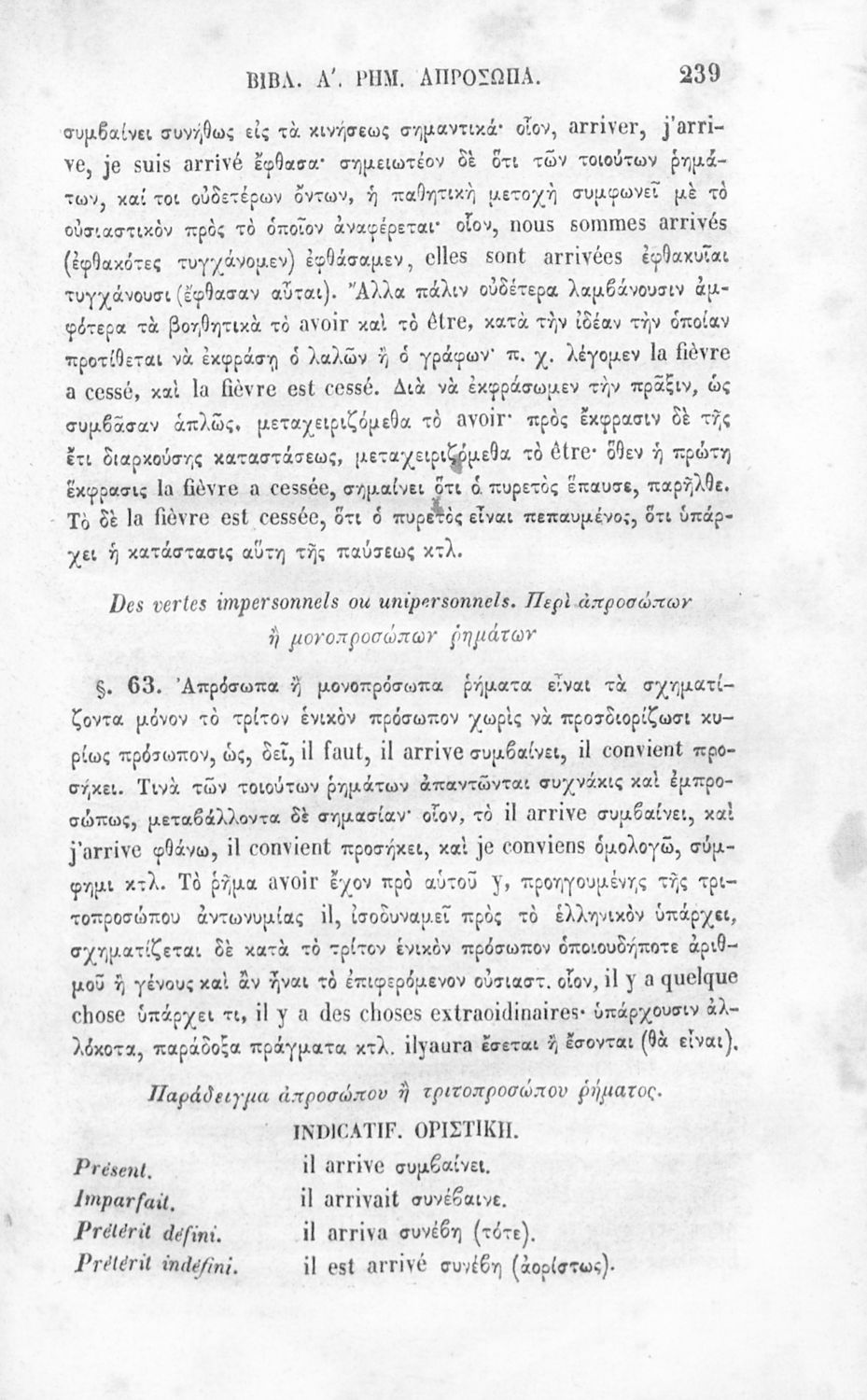Γραμματική της Γαλλικής γλώσσας για τα Τετρατάξια Γυμνάσια, τη Γ΄ τάξη των Αστικών Σχολείων Θηλέων και τα Διδασκαλεία της Δημοτικής Εκπαίδευσης που περιλαμβάνει θεωρία, ασκήσεις και λεξιλόγιο.