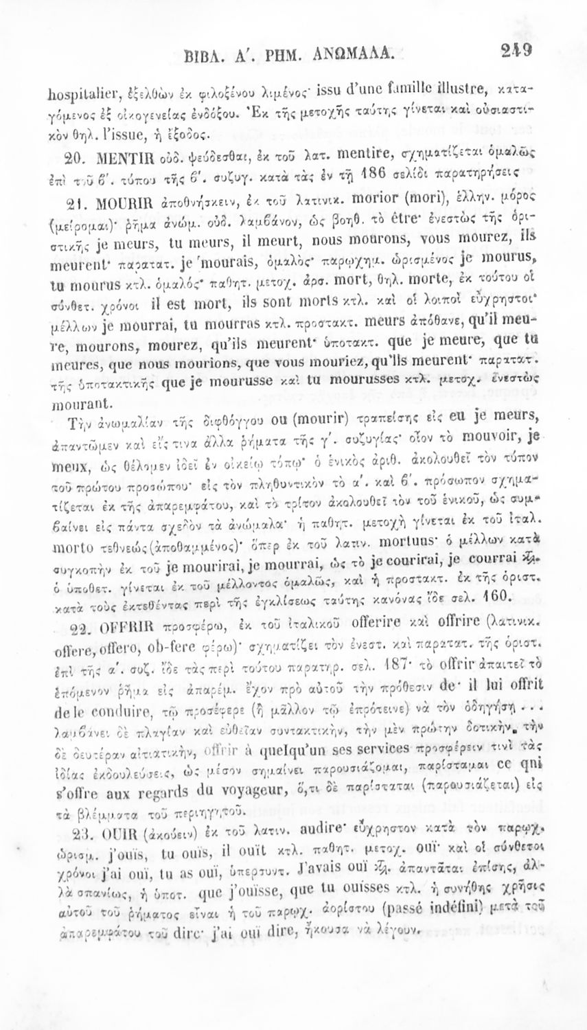Μαθητικό βοήθημα που περιέχει τους κανόνες γραμματικής της γαλλικής γλώσσας και είναι χωρισμένο σε τεχνολογικό και ετυμολογικό/ορθογραφικό μέρος.